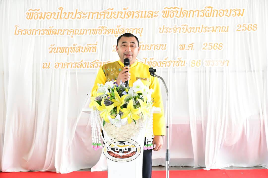 เข้าร่วมพิธีมอบใบประกาศนียบัตรและพิธีปิดการฝึกอบรมโครงการพัฒนาคุณภาพชีวิตผู้สูงอายุ ประจำปีงบประมาณ 2568