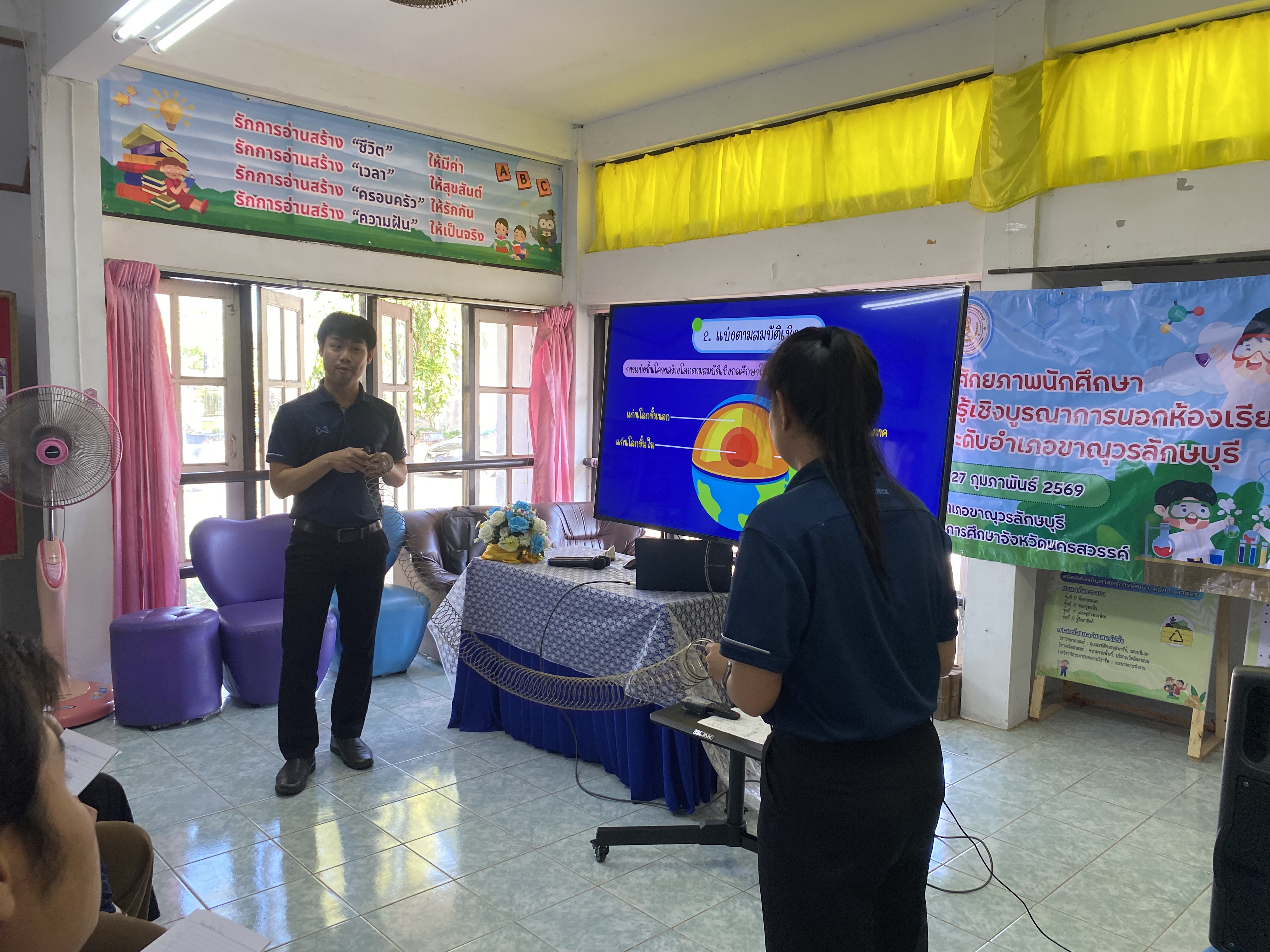 วันพฤหัสบดีที่ 26 กุมภาพันธ์ 2569 นางจรรณญากร โฉมงาม ครู รักษาการในตำแหน่งผู้อำนวยการศูนย์ส่งเสริมการเรียนรู้ระดับอำเภอขาณุวรลักษบุรี มอบหมายให้ นางสาวนวินตา ธนกูลชัยรัช ครูผู้ช่วย พร้อมด้วยครู บุคลากร ดำเนินการจัดโครงการพัฒนาศักยภาพนักศึกษาเสริมสร้างประสบการณ์เรียนรู้เชิงบูรณาการ นอกห้องเรียนสู่โลกวิทยาศาสตร์ ศูนย์ส่งเสริมการเรียนรู้ระดับอำเภอขาณุวรลักษบุรี ระยะที่ 1โดยมีวัตถุประสงค์เพื่อให้ผู้เรียนได้รับความรู้ความเข้าใจเกี่ยวกับวิทยาศาสตร์ ดาราศาสตร์ และเทคโนโลยี จากแหล่งเรียนรู้ที่ทันสมัยและได้มาตรฐาน ส่งเสริมให้ผู้เรียนได้ฝึกทักษะกระบวนการทางวิทยาศาสตร์ ผ่านการสังเกต การทดลอง และการทำกิจกรรม Workshop ฐานการเรียนรู้ต่างๆ กลุ่มเป้าหมายผู้เรียน 70 คน และได้รับเกียรติจากคณะครูโรงเรียนขาณุวิทยามาเป็นวิทยากรบรรยาย ให้ความรู้ในครั้งนี้ สถานที่ ห้องสมุดประชาชนอำเภอขาณุวรลักษบุรี