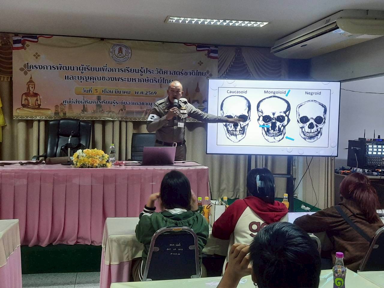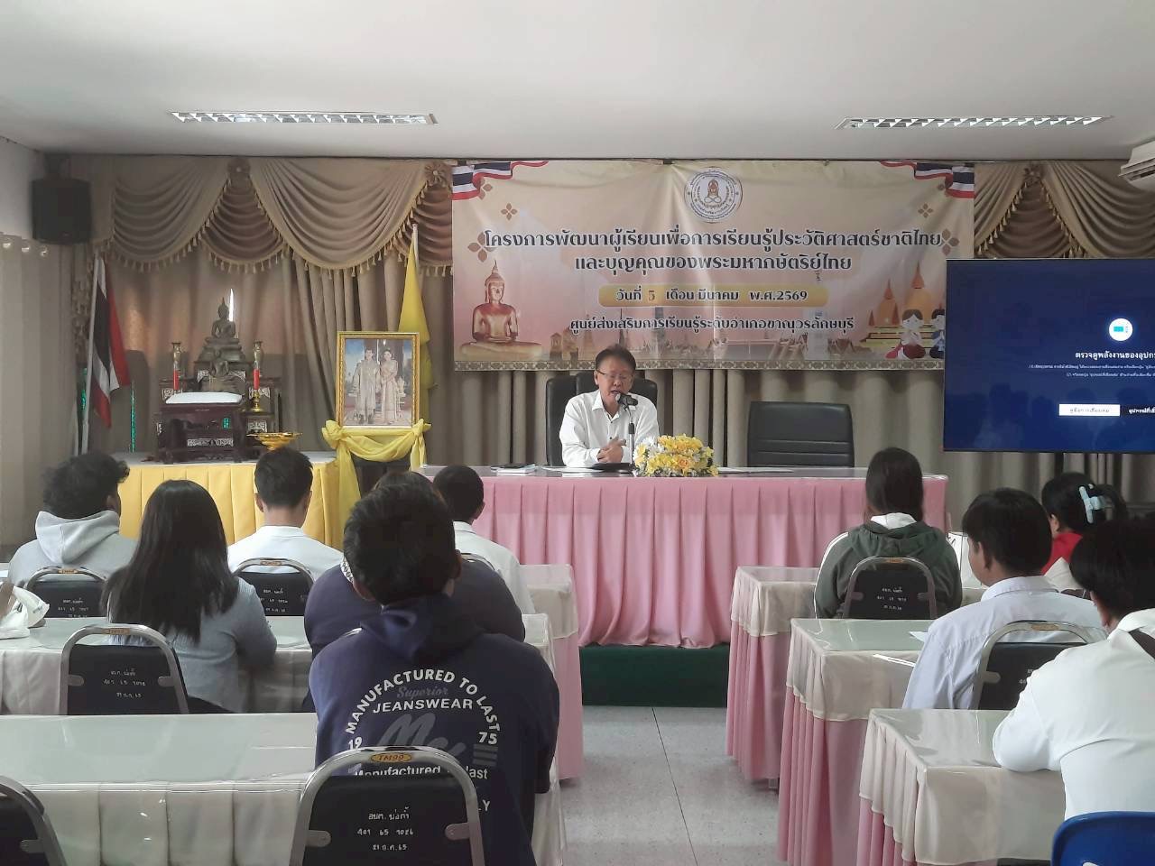 วันพฤหัสบดีที่ 5 มีนาคม 2569 นางจรรณญากร โฉมงาม ครู รักษาการในตำแหน่งผู้อำนวยการศูนย์ส่งเสริมการเรียนรู้ระดับอำเภอขาณุวรลักษบุรี มอบหมายให้ บุคลากรที่เกี่ยวข้อง ดำเนินการจัดโครงการพัฒนาผู้เรียนเพื่อการเรียนรู้ประวัติศาสตร์ และบุญคุณของพระมหากษัตริย์ไทย รุ่นที่ 2 โดยมีวัตถุประสงค์เพื่อกส่งเสริมให้นักศึกษาได้เรียนรู้เกี่ยวกับประวัติศาสตร์ชาติไทย เห็นความสำคัญของสถาบันพระมหากษัตริย์ไทย และบุญคุณของพระมหากษัตริย์ไทย สามารถนำความรู้ไปใช้ประโยชน์ในการดำเนินชีวิตได้ กลุ่มเป้าหมายผู้เรียน จำนวน 50 คน โดยมี นายวัฒนา ศรีวิไล นายกองค์การบริหารส่วนตำบลบ่อถ้ำ เป็นประธานในพิธีเปิดโครงการ และได้รับเกียรติจาก ว่าที่ ร.ต.ต.โกเมนทร์ ภู่เจริญ มาเป็นวิทยากรบรรยายให้ความรู้ในครั้งนี้ สถานที่ องค์การบริหารส่วนตำบลบ่อถ้ำ
