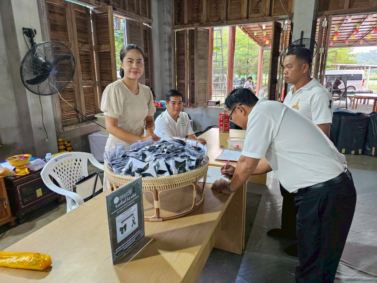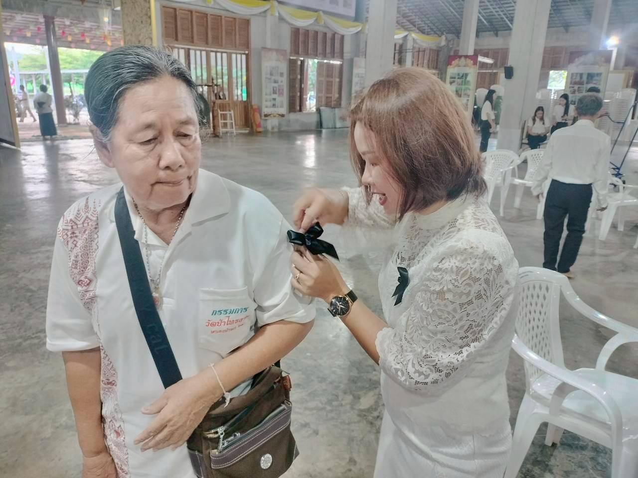 นำริบบิ้นไว้อาลัยไปแจกให้กับผู้มาร่วมทำบุญ (พาทำบุฯในวันธรรมสวนะ)