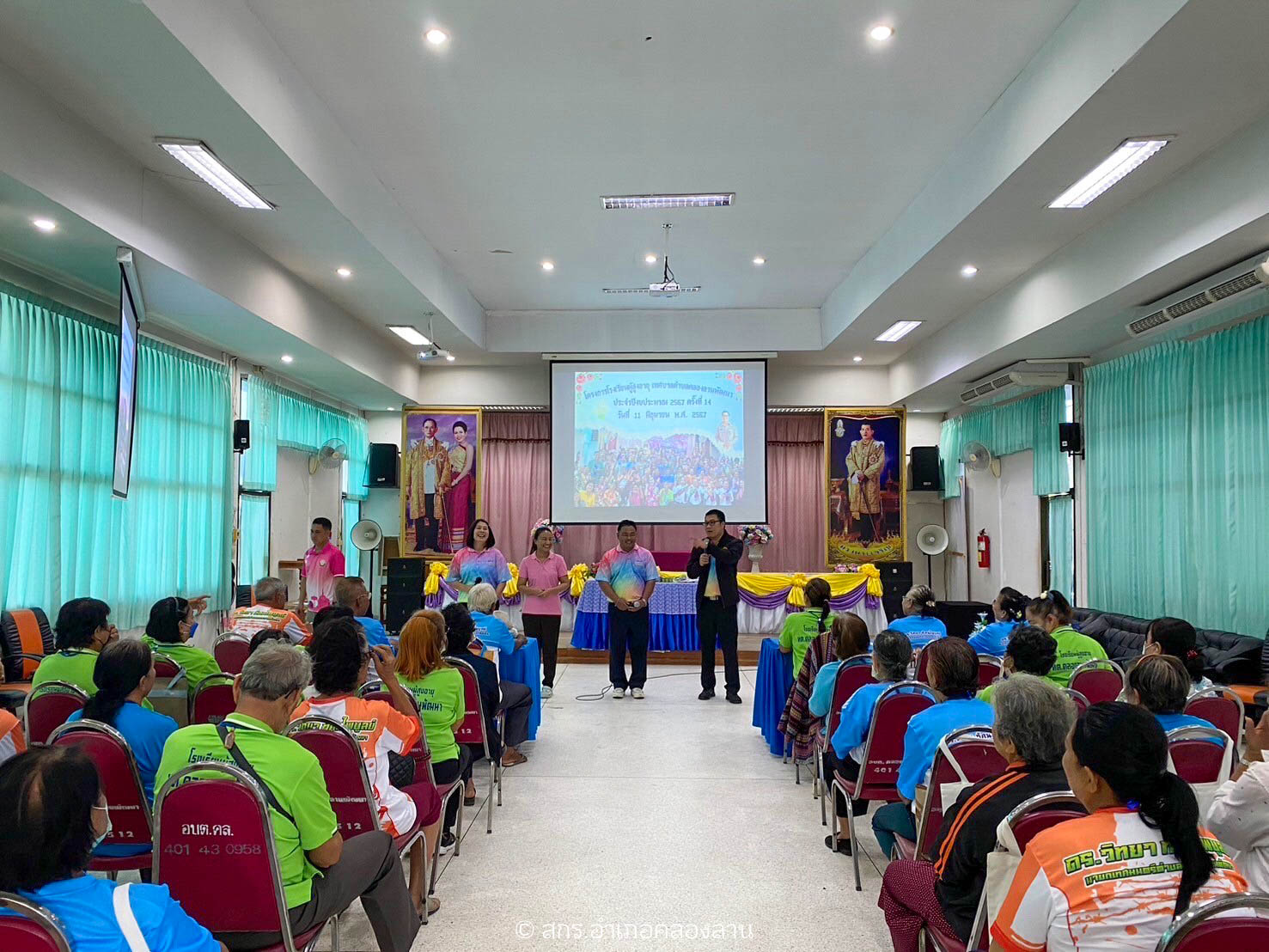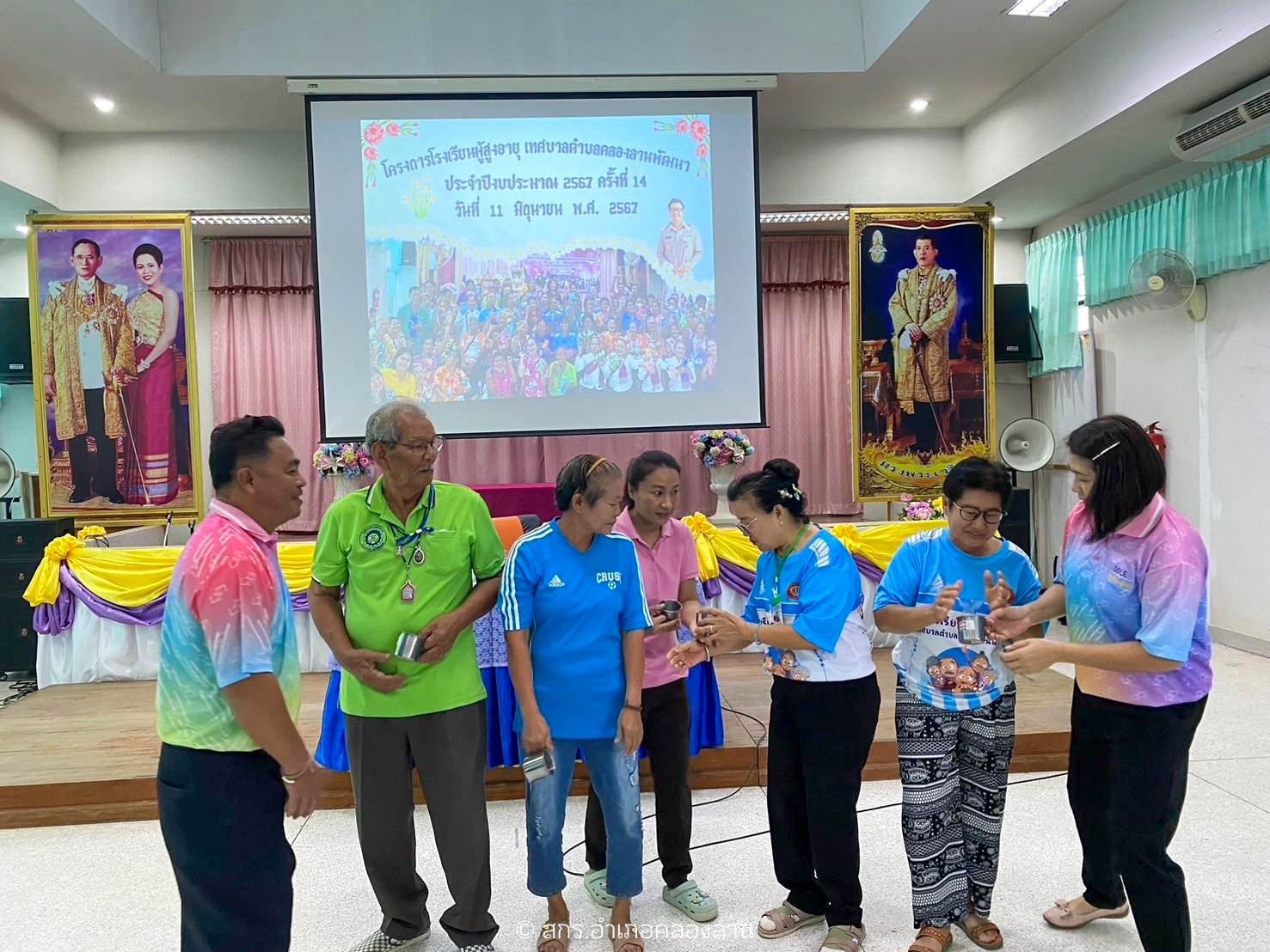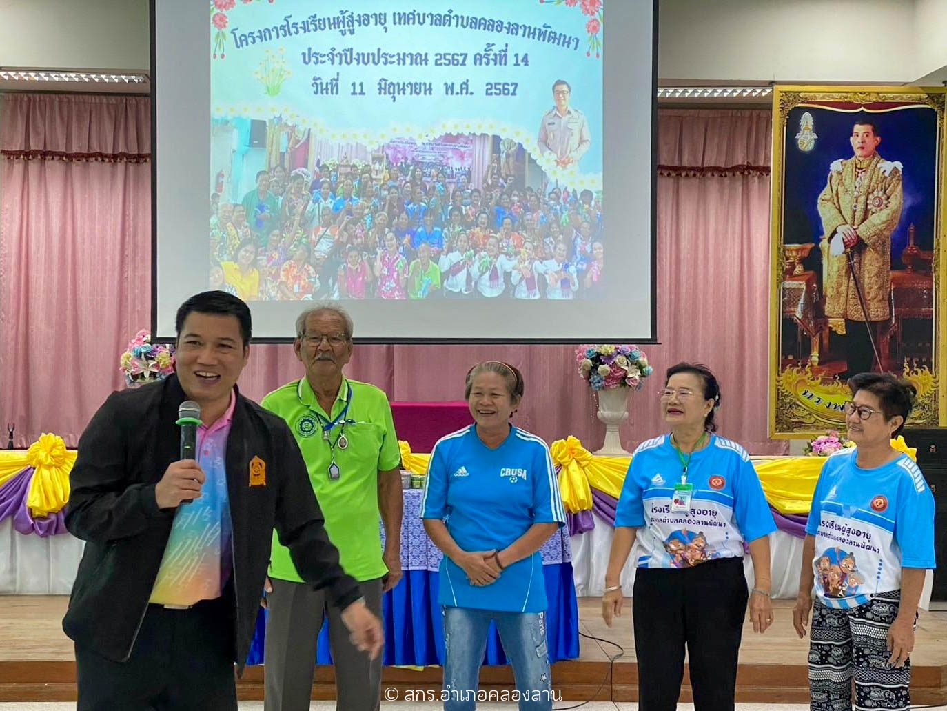 วันที่ 11 มิถุนายน 2567 นายรามินทร์ มูลไธสง ครูรักษาการในตำแหน่ง ผู้อำนวยการศูนย์ส่งเสริมการเรียนรู้ระดับอำเภอคลองลาน พร้อมด้วย นายสุพจน์ บุญจันทร์ศรี ครูอาสาสมัครการศึกษานอกโรงเรียน นางสาววรรัตน์ โพธิ์กิ่ง ครู กศน.ตำบลคลองลานพัฒนา และนางสาวเพ็ญพันธุ์ ประดับสุข ครูกศน.ตำบลสักงาม ร่วมจัดกิจกรรมโครงการโรงเรียนผู้สูงอายุ เทศบาลตำบลคลองลานพัฒนา โดยนำกิจกรรมการเรียนรู้หนังสือไทย กิจกรรมนัทนาการ การออกกำลังกายสำหรับผู้สูงอายุ โดยโครงการครั้งนี้มีวัตถุประสงค์เพื่อส่งเสริมการพัฒนาคุณภาพชีวิตและให้ความรู้ในด้านต่างๆกับผู้สูงอายุ โดยมีท่านดร.วิทยา ทัศนไพบูลย์ นายกเทศมนตรีตำบลคลองลานพัฒนา กล่าวทักทาย นักเรียนโรงเรียนผู้สูงอายุฯ และนางสาวอรัญญา เดชมโนมัย รองนายกเทศมนตรี นายสมนึก แก่นไม้หอม เลขานุการนายก นายชัยนุศักดิ์ แก้วฉิมมา ประธานสภาเทศบาล นายสุพจน์ เทียนสันเทียะ สมาชิกสภาเทศบาล เขต 2 และเจ้าหน้าที่กองสวัสดิการสังคม เข้าร่วมกิจกรรมในครั้งนี้