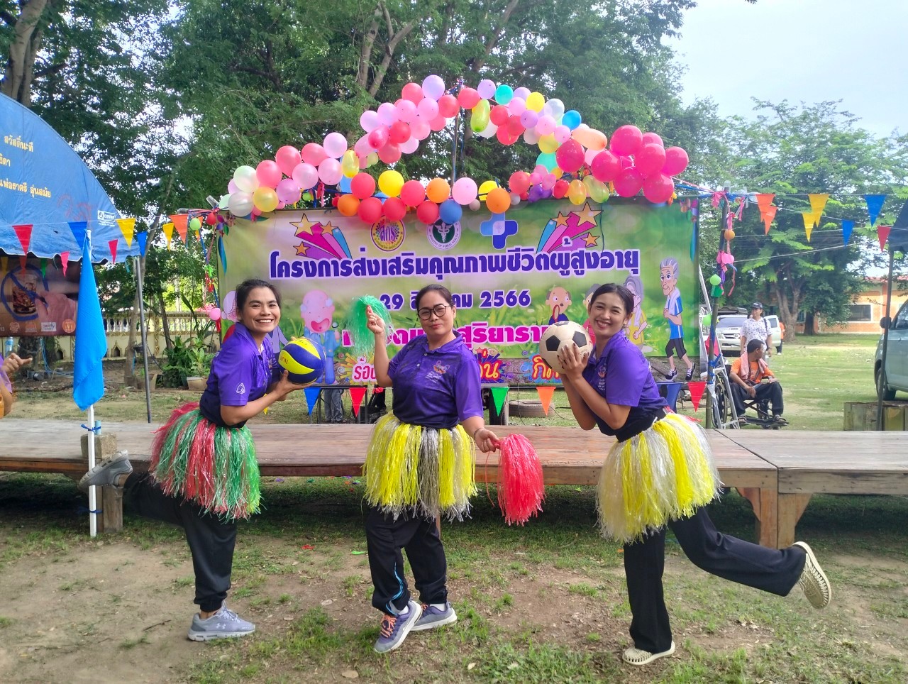 วันที่ 29 สิงหาคม 2566 สกร.อำเภอบึงสามัคคี นำโดย นางสาวหยาดพิรุณ สุปัญญา ครูชำนาญการ รักษาการฯผู้อำนวยการ พร้อมด้วย คณะครู เข้าร่วมโครงการส่งเสริมคุณภาพชีวิตผู้สูงอายุ ประจำปีงบประมาณ 2566 โดยมีนายสุนทร รัตนากร นายก องค์การบริหารส่วนจังหวัดกำแพงเพชร ร่วมพบปะให้กำลังใจกับผู้สูงอายุ พร้อมด้วยหัวหน้าส่วนราชการร่วมให้กำลังใจให้กับผู้สูงอายุที่เข้าร่วมกิจกรรม ซึ่งการจัดโครงการในครั้งนี้จากการประสานความร่วมมือภาคเครือข่ายสาธารณสุขอำเภอบึงสามัคคี โรงพยาบาลส่งเสริมตำบลวัง ชะโอน (รพ.สต.วังชะโอน ,รพ.สต.ชายเคือง ,รพ.สต.โพธิ์เอน) และเทศบาลตำบลระหาน เพื่อให้ผู้สูงอายุได้ มีความรู้การ ส่งเสริมคุณภาพชีวิตของผู้สูงอายุ และร้อง เต้น เล่น กีฬาสำหรับส่งเสริมคุณภาพชีวิตของ ผู้สูงอายุในอำเภอบึงสามัคคี ณ วัดแสงสุริยาราม ตำบลวังชะโอน อำเภอบึงสามัคคี จังหวัดกำแพงเพชร มีผู้สูงอายุเข้าร่วมกิจกรรมจำนวน 180 คน ซึ่งโครงการส่งเสริมคุณภาพชีวิตผู้สูงอายุ เป็นโครงการที่มุ่งเน้นการส่งเสริมให้ผู้สูงอายุมีสุขภาพกายและใจที่ดี มีคุณภาพชีวิตที่ดีและมีความสุข โดยมุ่งเน้นใน 3 ด้านหลัก ดังนี้