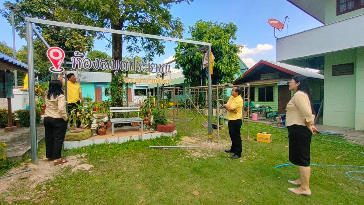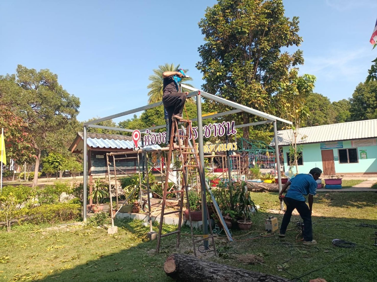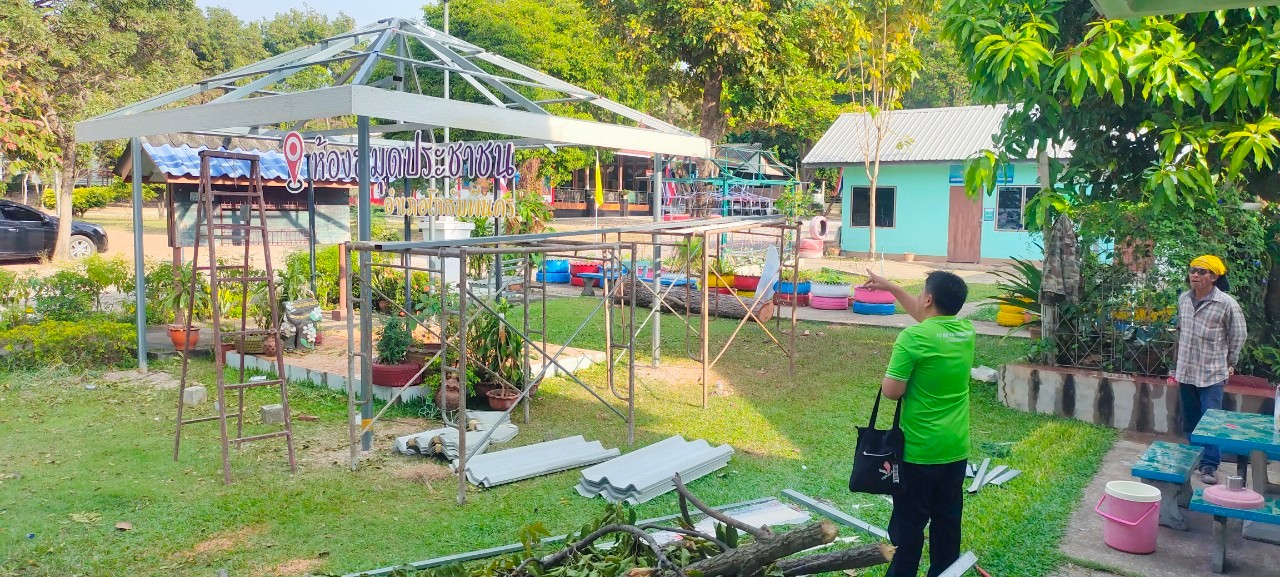 โครงการปรับภูมิทัศน์สถานที่ ทำซุ้มหลังคาที่นั่ง สกร.ระดับอำเภอโกสัมพีนคร