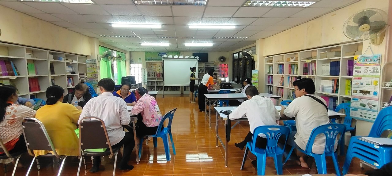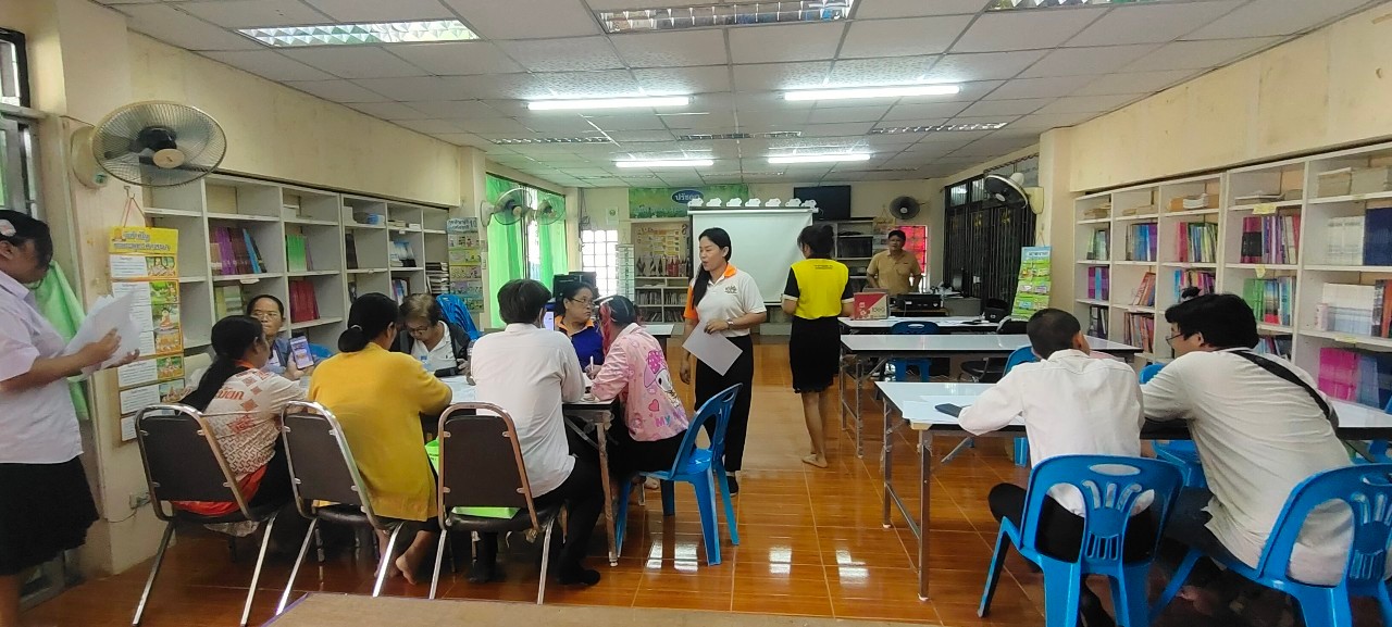 กิจกรรมส่งเสริมการอ่านและการเรียนรู้พบกลุ่มนักศึกษาลานดอกไม้ตก ทำใบงาน