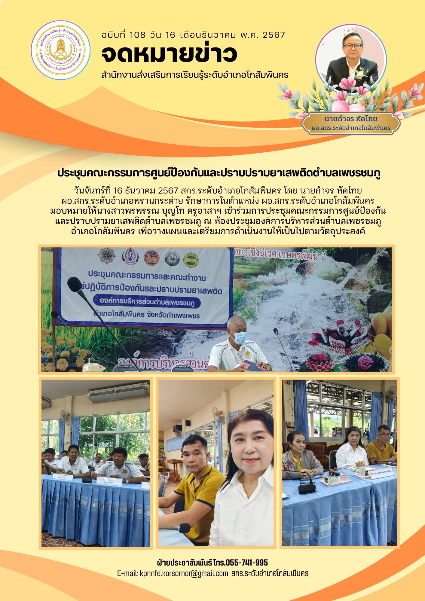 ประชุมคณะกรรมการศูนย์ป้องกันและปราบปรามยาเสพติดตำบลเพชรชมภู