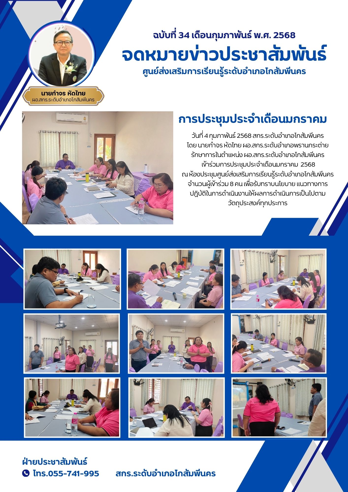 การประชุมประจำเดือนมกราคม สกร.ระดับอำเภอโกสัมพีนคร วันที่ 4 กุมภาพันธ์ 2568