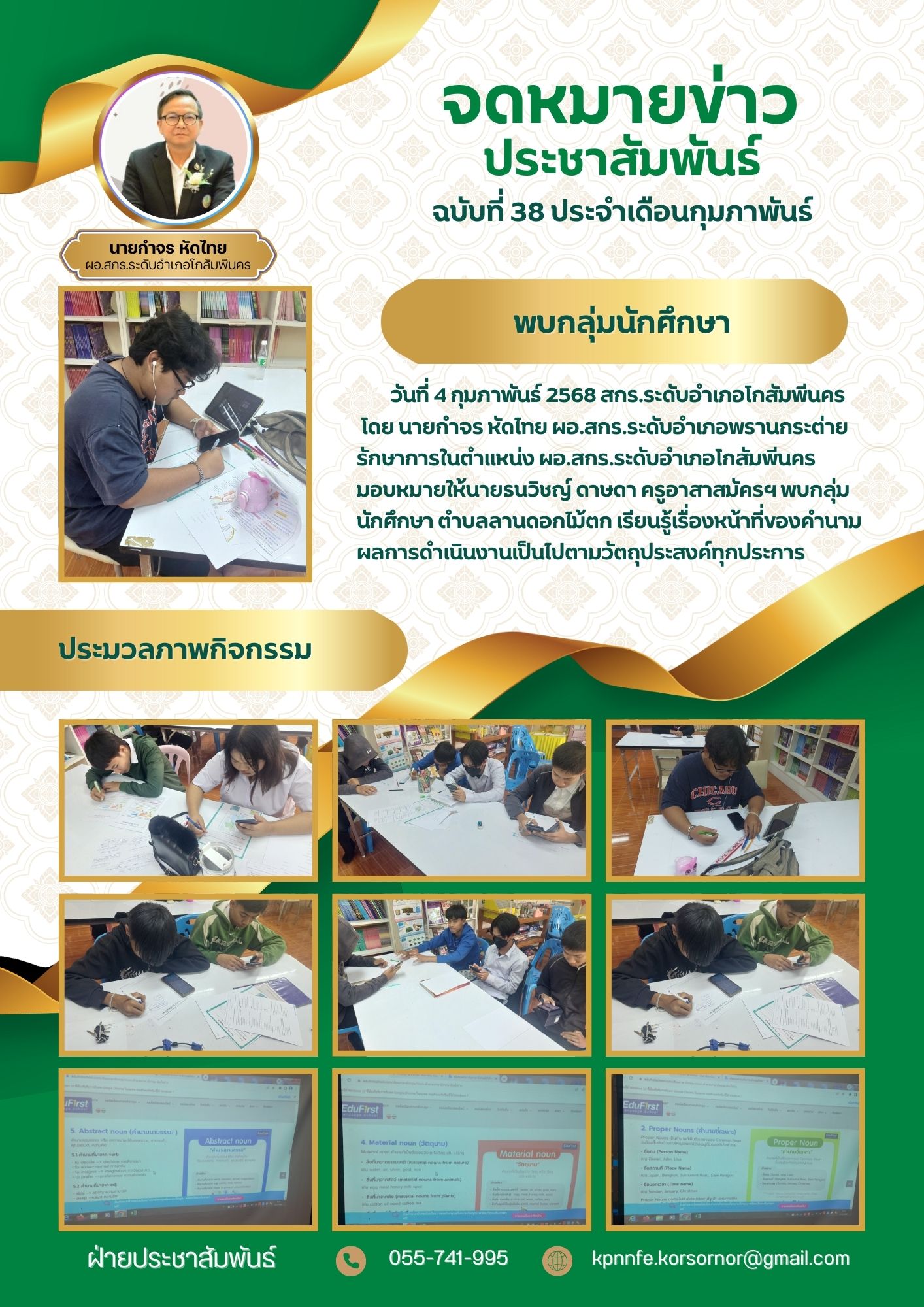 พบกลุ่มนักศึกษา ตำบลลานดอกไม้ตก เรียนรู้เรื่องหน้าที่ของคำนาม 5 รูปแบบ