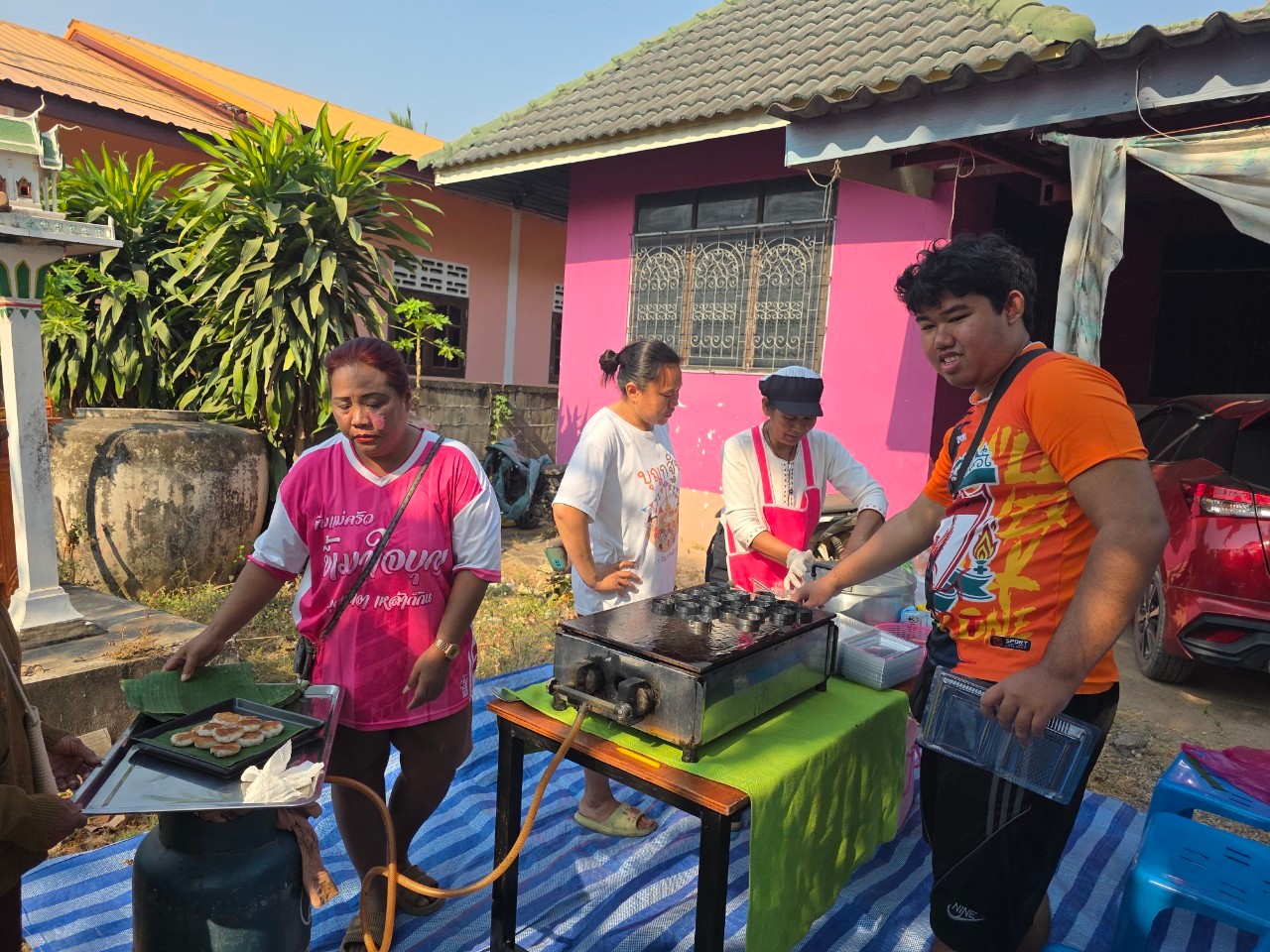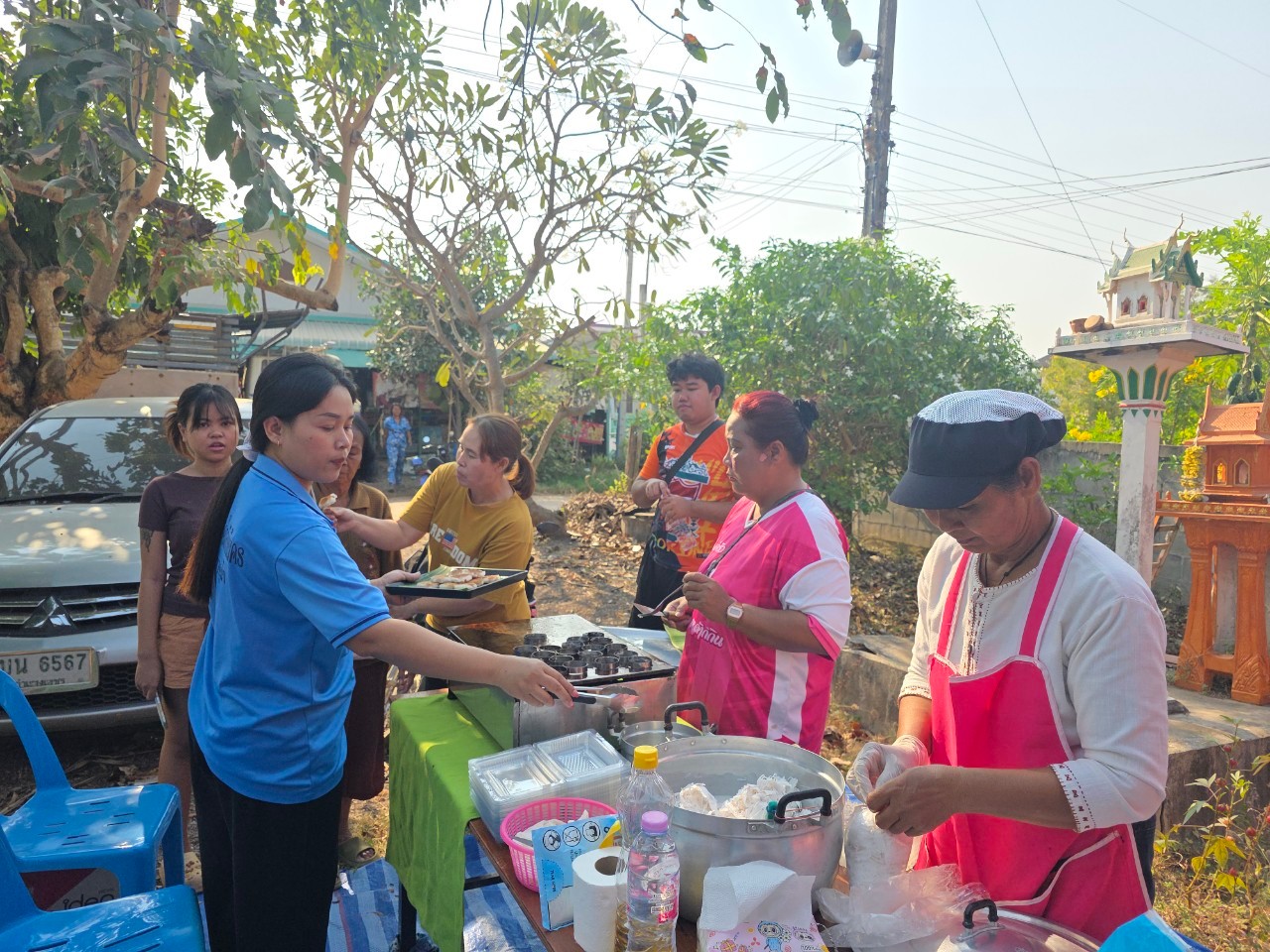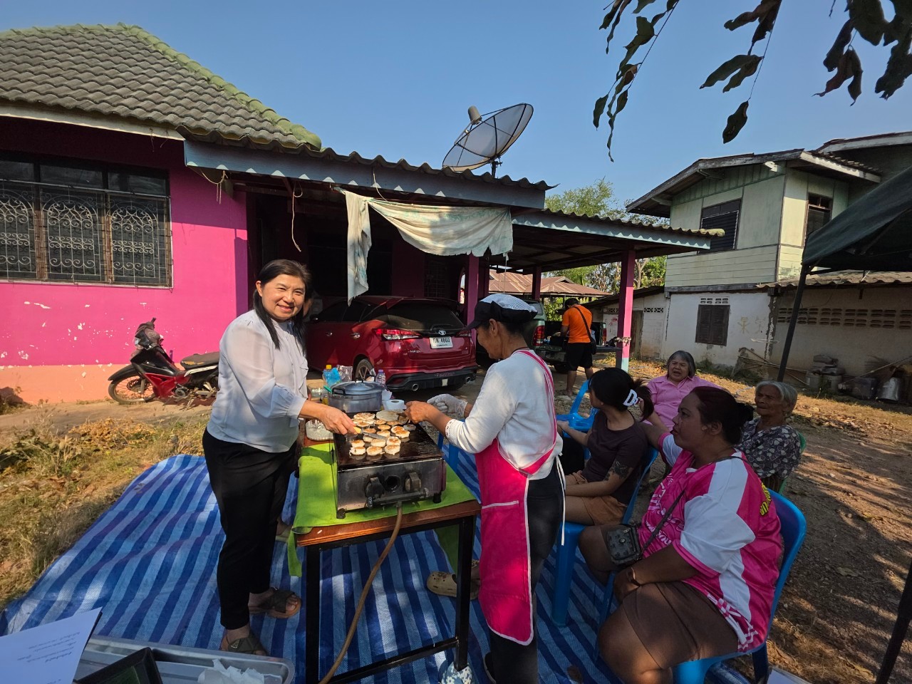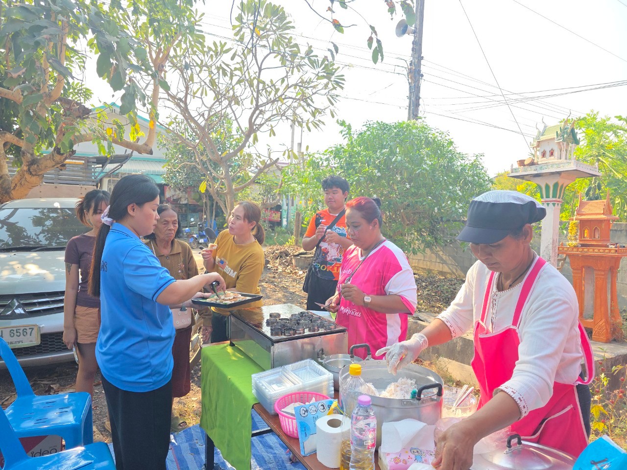 โครงการศูนย์ฝึกอาชีพชุมชน เพื่อพัฒนาคุณภาพชีวิต กิจกรรมการเรียนรู้เพื่อพัฒนาตนเอง สอนทำขนมบ้าบิ่นในหมู่ 5 วันที่ 14 กุมภาพันธ์ 2568