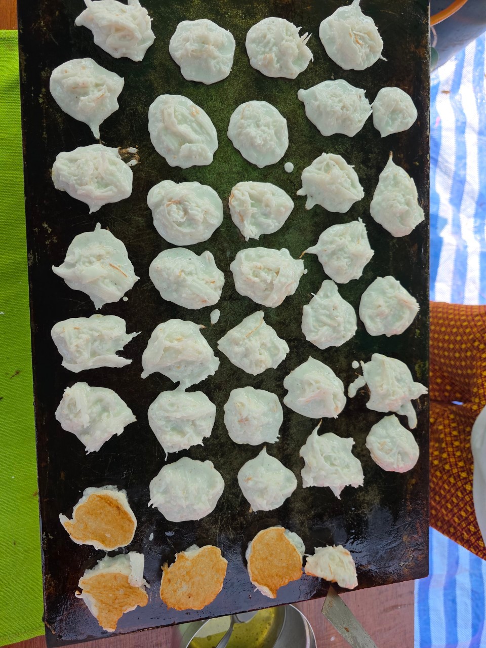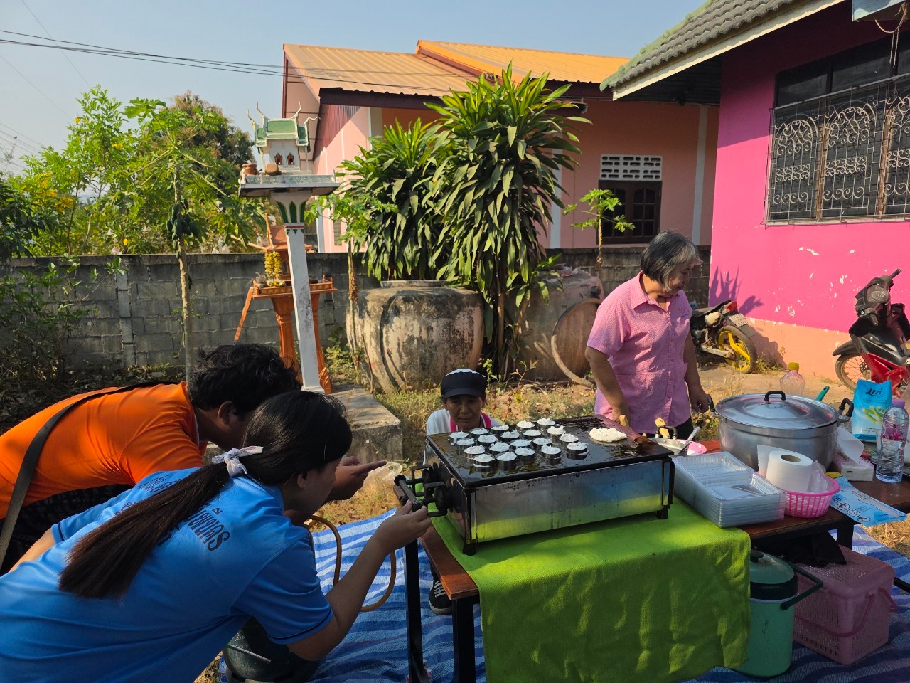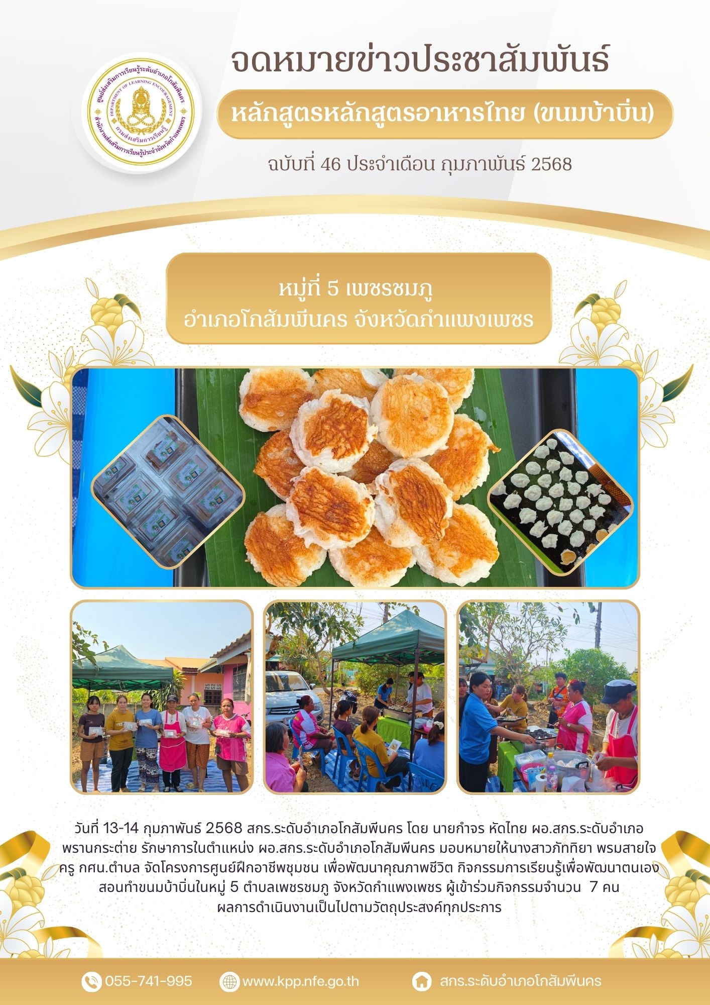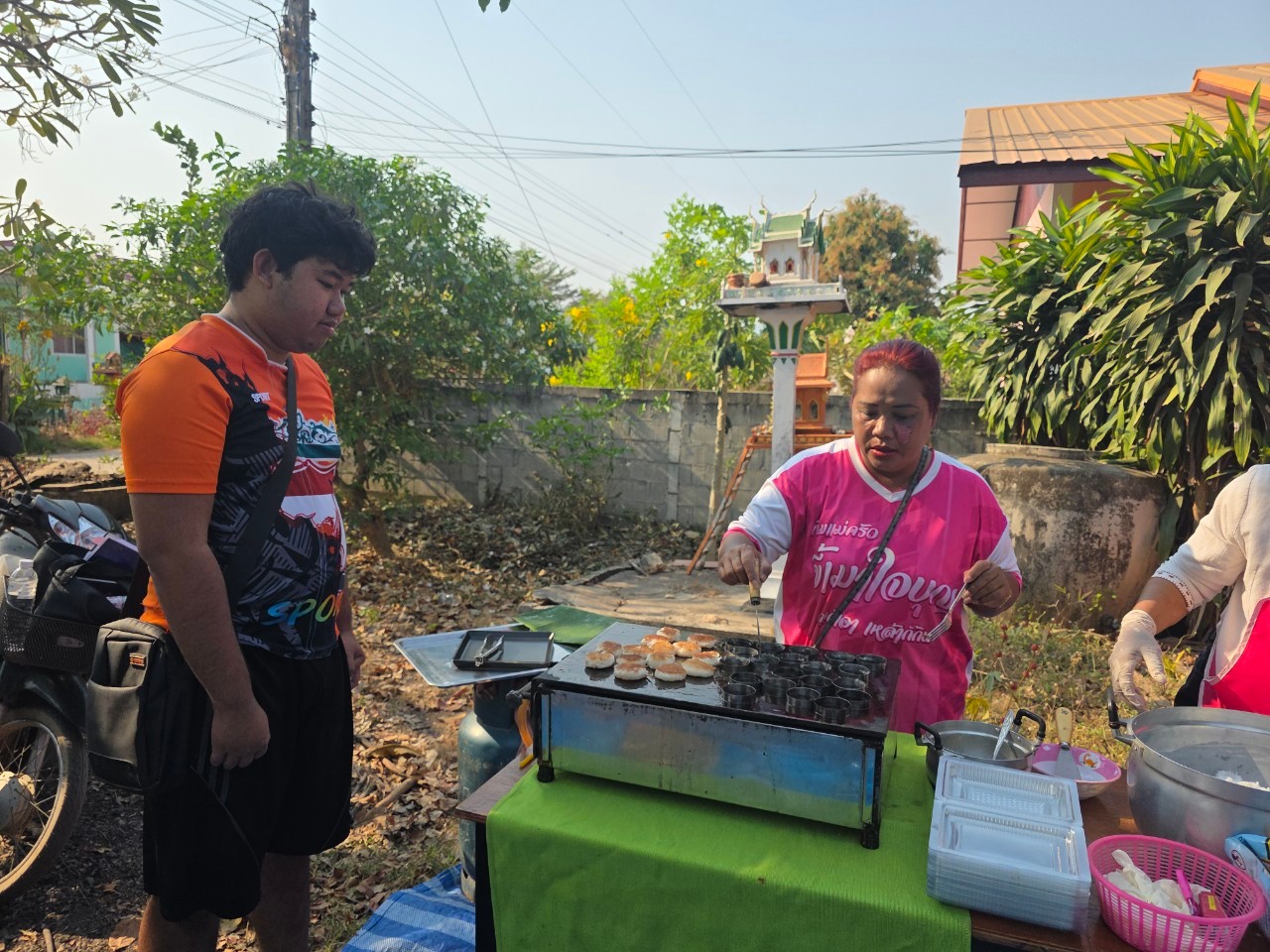 โครงการศูนย์ฝึกอาชีพชุมชน เพื่อพัฒนาคุณภาพชีวิต กิจกรรมการเรียนรู้เพื่อพัฒนาตนเอง สอนทำขนมบ้าบิ่นในหมู่ 5 วันที่ 14 กุมภาพันธ์ 2568