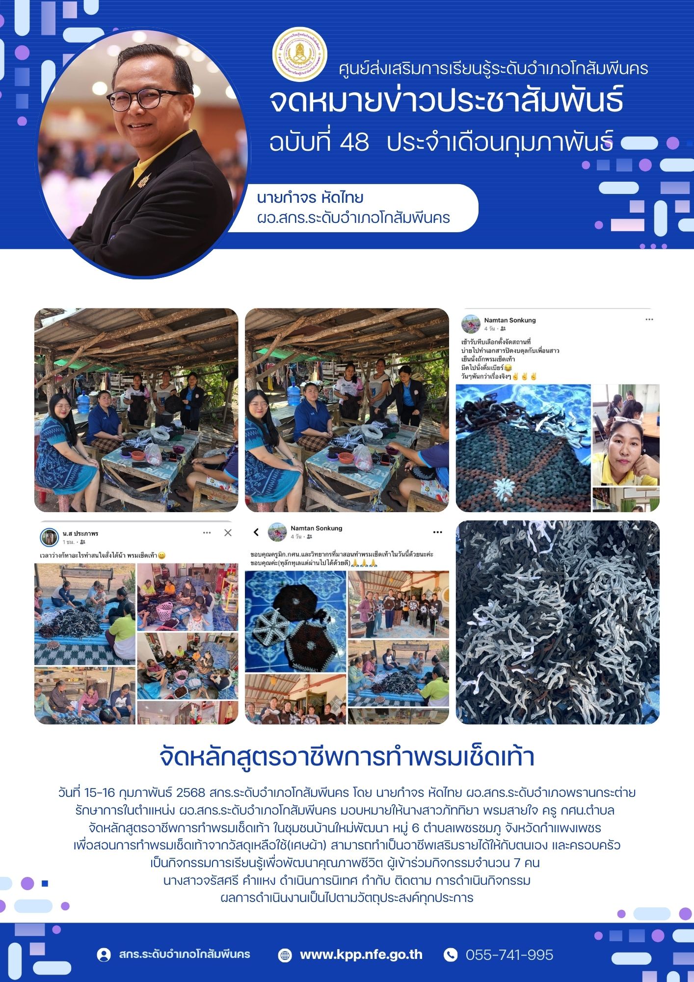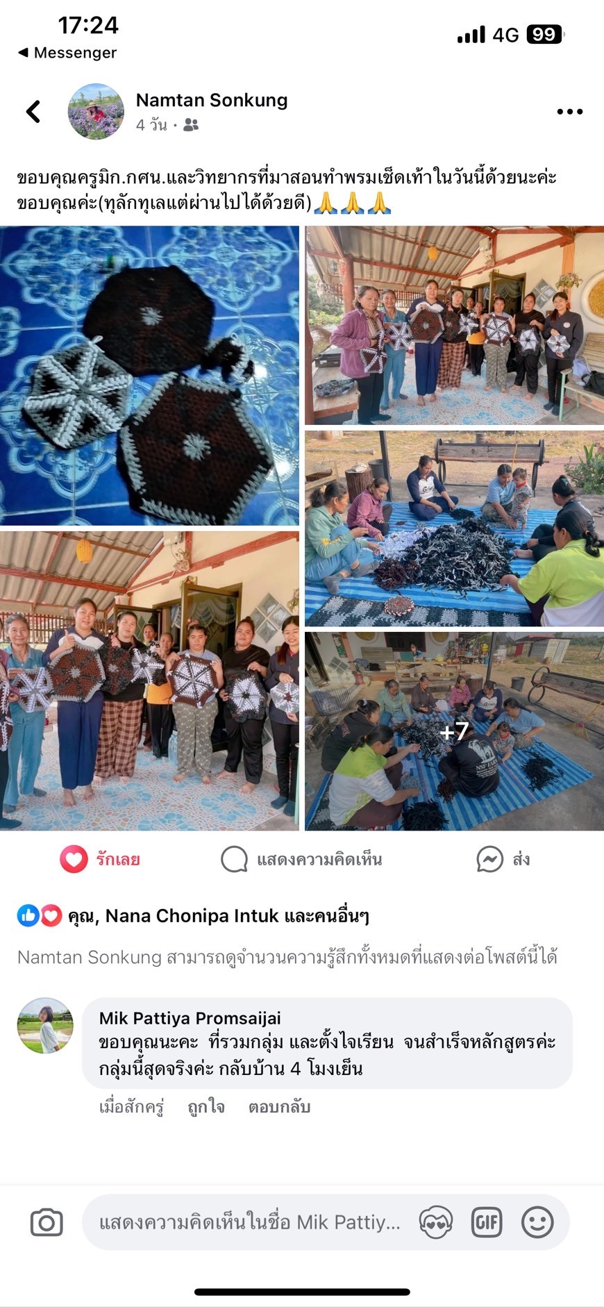 หลักสูตรอาชีพการทำพรมเช็ดเท้า ในชุมชนบ้านใหม่พัฒนา หมู่ 6 ตำบลเพชรชมภู วันที่ 15-16 กุมภาพันธ์ 2568