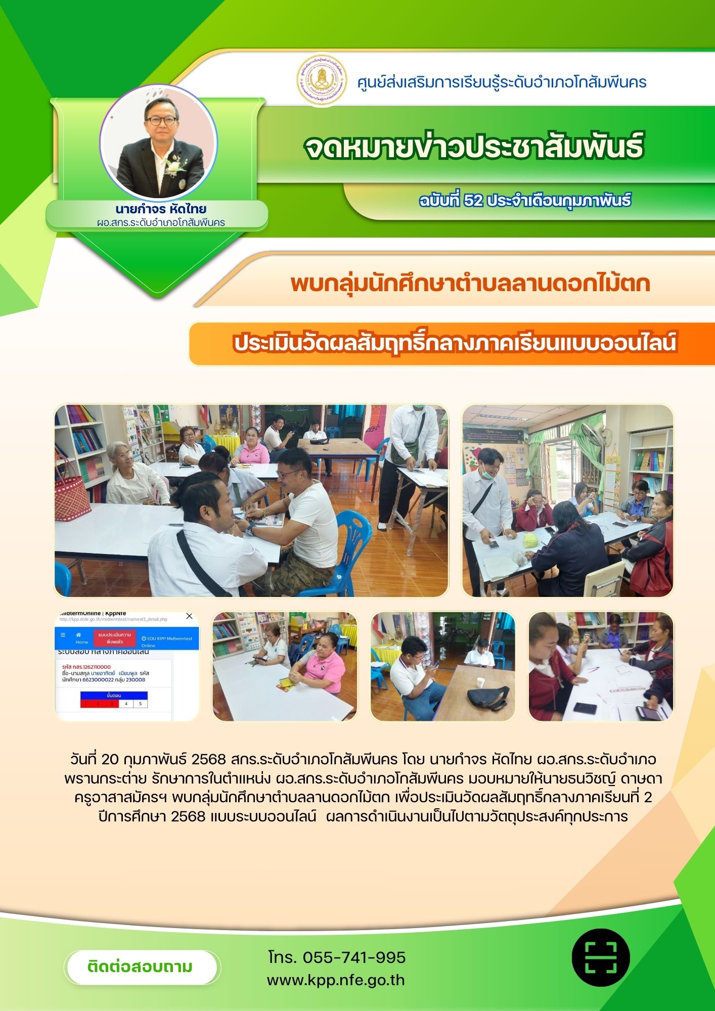 พบกลุ่มนักศึกษาตำบลลานดอกไม้ตก เพื่อประเมินวัดผลสัมฤทธิ์กลางภาค วันที่ 20 กุมภาพันธ์ 2568