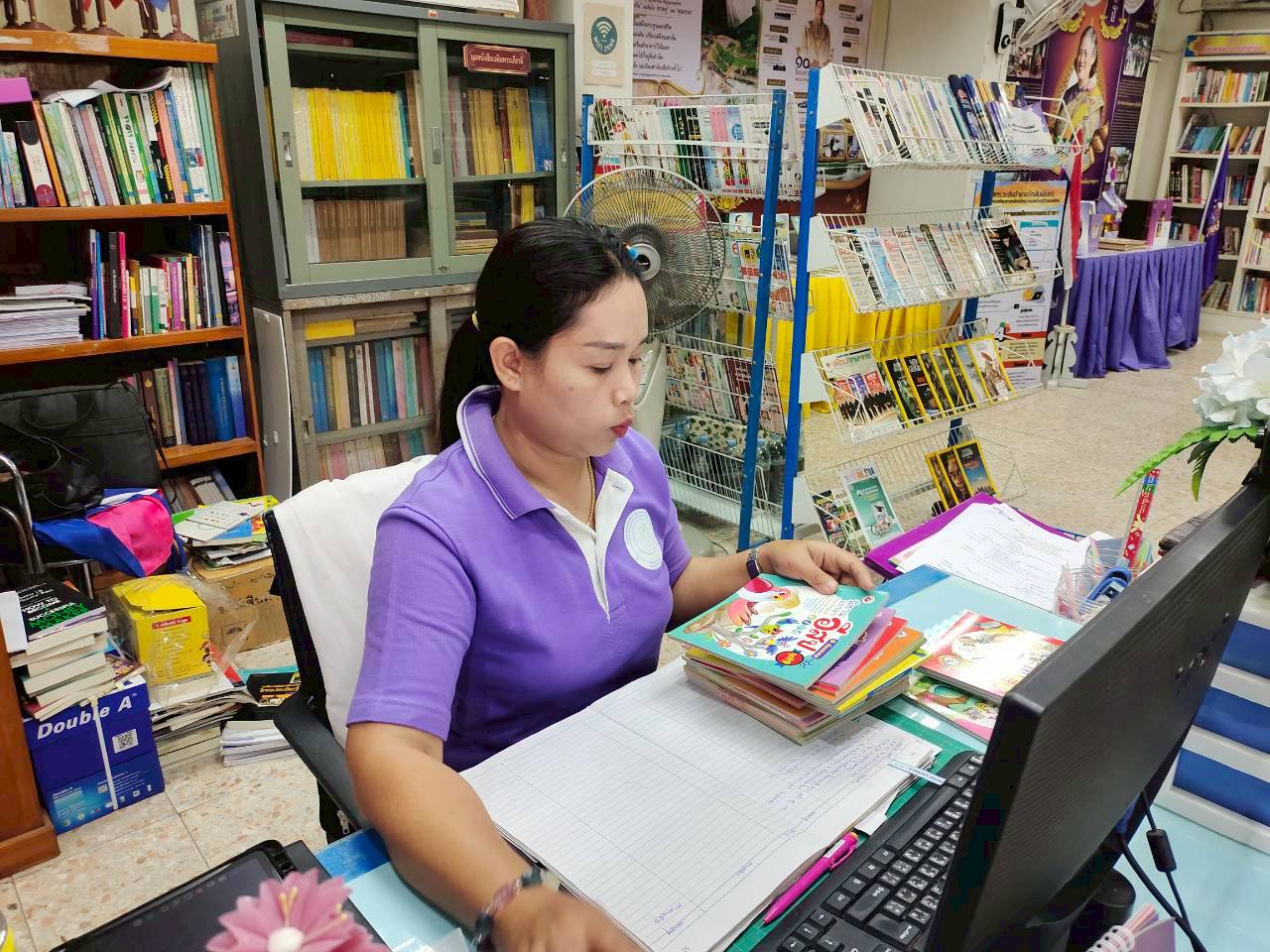 ตรวจนับหนังสือ และนางสาวพรพรรณ บุญโท ครู ศกร. ตรวจรับหนังสือ เพื่อการบริการให้ประชาชน