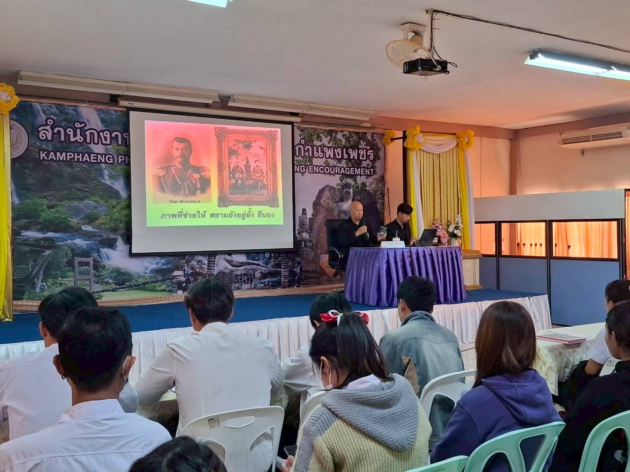 วันที่ 15-17 ธันวาคม 2568 นางจรรณญากร โฉมงาม ครู รักษาการในตำแหน่งผู้อำนวยการ ศูนย์ส่งเสริมการเรียนรู้ระดับอำเภอขาณุวรลักษบุรี พร้อมด้วย นางสาวละเบียบ บุญนิธี ครูศูนย์การเรียนรู้ นำนักศึกษา เข้าร่วมโครงการเรียนรู้ตามรอยพระยุคลบาท เฟส 2 โดยมี นายกำจรหัดไทย ผู้อำนวยการ ศูนย์ส่งเสริมการเรียนรู้ระดับอำเภอพรานกระต่าย เป็นประธานเปิดโครงการฯ และได้รับเกียรติ จาก นายสมโภชน์ นพคุณ กรรมการมูลนิธิประเทศไทยใสสะอาด เป็นวิทยากร บรรยาย "พระมหากษัตริย์ พ่อของแผ่นดิน" และนางสาวศริญญา สินธุ์เกษม และทีมวิทยากร บรรยาย หลักการทรงงาน "พ่อของแผ่นดิน" ณ ห้องประชุมสำนักงานส่งเสริมการเรียนรู้ประจำจังหวัดกำแพงเพชร