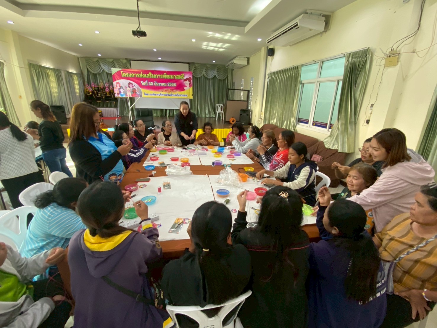 วันอังคารที่ 30 ธันวาคม 2568 นางจรรณญากร โฉมงาม ครู รักษาการในตำแหน่งผู้อำนวยการศูนย์ส่งเสริมการเรียนรู้ระดับอำเภอขาณุวรลักษบุรี ได้มอบหมายให้นางสาวสุภาพ ทองทจิตร และนางฐิติกานต์ กองทรง ครูศูนย์การเรียนรู้ เป็นวิทยากร สอนการร้อยสร้อยข้อมือลูกปัดและการทำริบบิ้นไว้อาลัยสมเด็จพระนางเจ้าสิริกิติ์ พระบรมราชินีนาถ พระบรมราชชนนีพันปีหลวง ในโครงการส่งเสริมพัฒนาสตรี ณ องค์การบริหารส่วนตำบลวังหามแห อำเภอขาณุวรลักษบุรี จังหวัดกำแพงเพชร