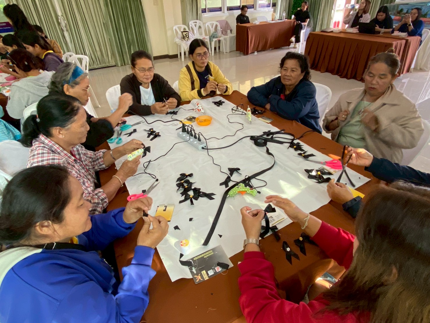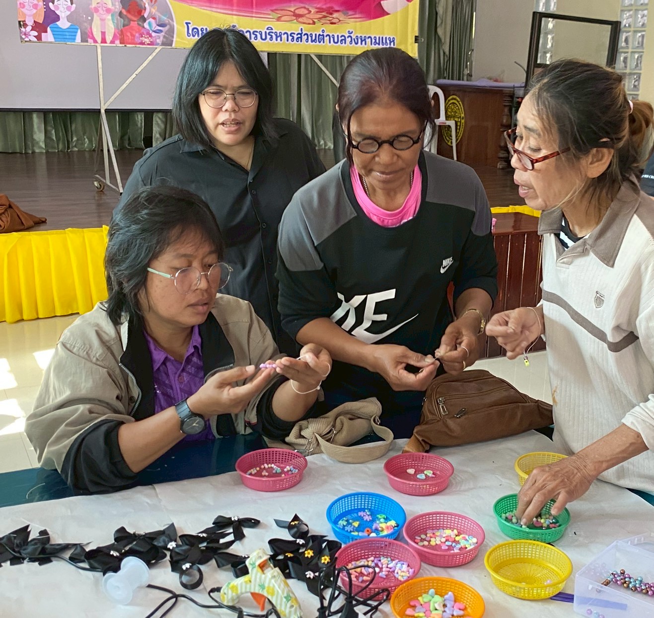 เป็นวิทยากร สอนการร้อยสร้อยข้อมือลูกปัดและการทำริบบิ้นไว้อาลัย
