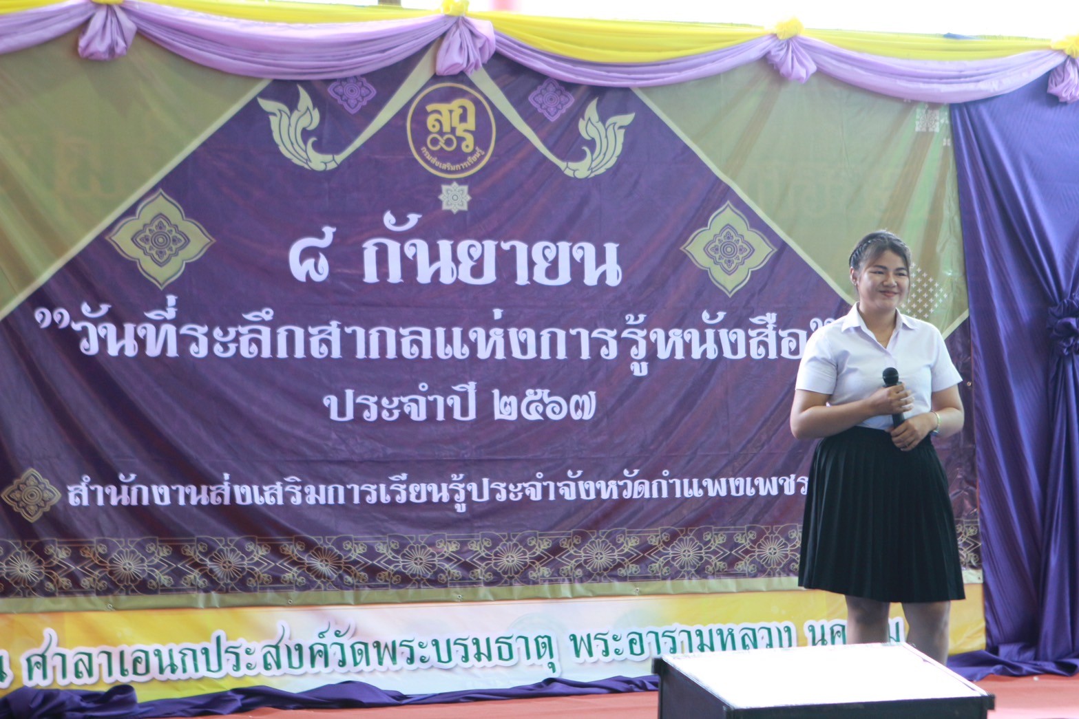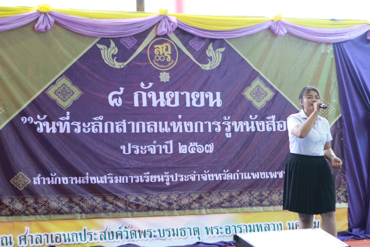 วันที่ 8 กันยายน 2567 นายกำจร หัดไทย ผอ.กศน.อำเภอพรานกระต่าย รักษาการในตำแหน่ง ผอ.กศน.อำเภอลานกระบือ ปฏิบัติหน้าที่ ผอ.สกร.ระดับอำเภอลานกระบือ มอบหมายให้คณะครูนำนักศึกษา สกร.ระดับ อำเภอลานกระบือ เข้าร่วมกิจกรรม "วันที่ระลึกสากลแห่งการเรียนรู้หนังสือ ประจำปี 2567" ณ ศาลาเอนกประสงค์วัดพระบรมธาตุ พระอารามหลวง นครชุม อำเภอเมืองกำแพงเพชร จังหวัดกำแพงเพชร