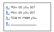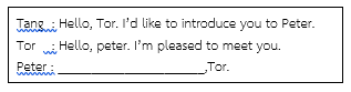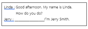 Linda : “Good morning. Tom.” Tom. : “………………………………., Linda”  |