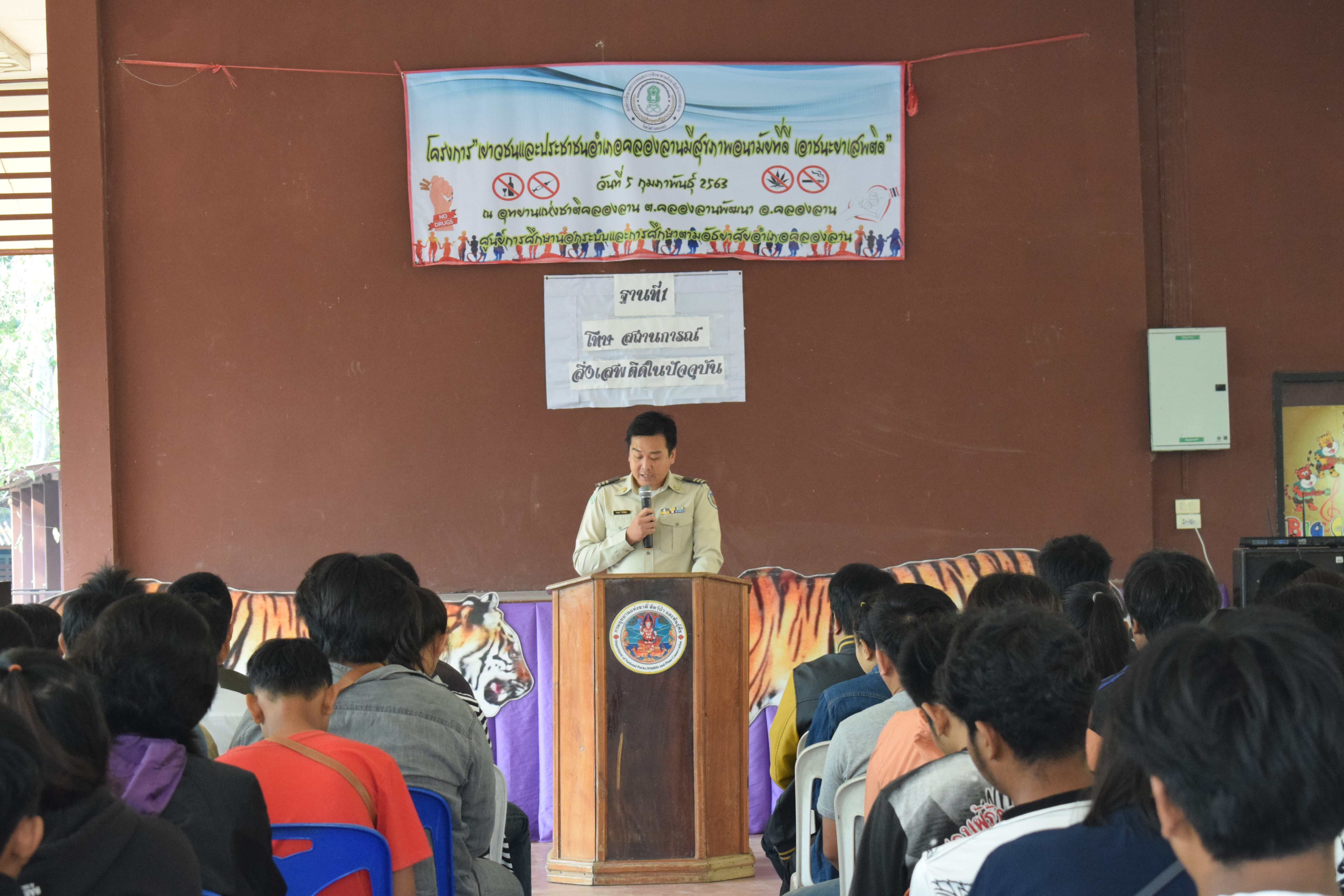 วันพุธที่ 5 กุมภาพันธ์ 2563 ศูนย์การศึกษานอกระบบและการศึกษาตามอัธยาศัยอำเภอคลองลานได้มีการดำเนินการจัดโครงการเยาวชนและประชาชนอำเภอคลองลานมีสุขภาพอนามัยที่ดีเอาชนะยาเสพติด ประจำปีงบประมาณ พ.ศ. 2563 ณ อุทยานแห่งชาติคลองลานตำบลคลองลานพัฒนา อำเภอคลองลาน จังหวัดกำแพงเพชร โดยมีกลุ่มเป้าหมายเป็นเยาวชนและประชาชนในพื้นที่อำเภอคลองลาน มีวัตถุประสงค์ในการจัดโครงการฯ ดังนี้ 1) เพื่อให้เยาวชนและประชาชนในพื้นที่อำเภอคลองลานได้เรียนรู้และทราบถึงโทษภัยของยาเสพติด 2) เพื่อให้เยาวชนและประชาชนในพื้นที่อำเภอคลองลานได้รู้จักวิธีการป้องกันและหลีกเลี่ยงผลกระทบจากยาเสพติด และ 3) เพื่อให้เยาวชนและประชาชนในพื้นที่อำเภอคลองลานได้เรียนรู้สุขภาวะอนามัยที่ดีในชุมชน และนำความรู้ที่ได้รับไปปรับใช้ในชีวิตประจำวันอย่างมีคุณภาพ โดยมีนายพงศธร ธีรศรีศุภร ผู้ช่วยหัวหน้าอุทยานแห่งชาติคลองลานให้เกียรติเป็นประธานในพิธีเปิดโครงการฯ ณ อุทยานแห่งชาติคลองลาน ตำบลคลองลานพัฒนา อำเภอคลองลาน จังหวัดกำแพงเพชร ทั้งนี้ โครงการฯ ได้รับความอนุเคราะห์วิทยากรในการบรรยายให้ความรู้แก่เยาวชนและประชาชนที่เข้าร่วมโครงการพร้อมกับกิจกรรมต่าง ๆ โดยแบ่งกิจกรรมออกเป็นฐาน จำนวน 3 ฐานการเรียนรู้ ดังนี้ ฐานที่ 1 โทษ และสถานการณ์ยาเสพติดในปัจจุบัน วิทยากรจาก สำนักงานป้องกันและปราบปรามยาเสพติด ภาค 6 นายเชาว์ทวีเกียรติ เทียนทอง นักสืบสวนสอบสวนชำนาญการ , นางสาวพิมพ์พจี พันธุ์ชัย นักจัดการงานทั่วไป ผู้รับผิดชอบงานด้านการป้องกันและแก้ไขปัญหายาเสพติด สำนักงาน กศน.จังหวัดกำแพงเพชร ฐานที่ 2 ความรู้ความเข้าใจสุขภาวะอนามัยในชุมชน วิทยากรจาก โรงพยาบาลคลองลาน จังหวัดกำแพงเพชร นางสาวมณี พันธุ์เกษตร และฐานที่ 3 สิ่งแวดล้อมและการอนุรักษ์ วิยากรจากอุทยานแห่งชาติคลองลาน นายสมัคร ศรีสำเภา ซึ่งโครงการดังกล่าว ได้รับความสนใจจากเยาวชนและประชาชนในพื้นที่อำเภอคลองลานให้ความสนใจเข้าร่วมโครงการกว่า 106 คน ในการนี้นางคนึงนิตย์ วันนิตย์ ผู้อำนวยการสำนักงาน กศน.จังหวัดกำแพงเพชร ได้มอบหมายนางสาวชโรทัย ปัญติ ศึกษานิเทศก์ พร้อมด้วยคณะนิเทศลง นิเทศกิจกรรมดังกล่าว เพื่อติดตามการดำเนินงาน และสร้างขวัญและกำลังใจแก่บุคลากรครู กศน.อำเภอคลองลาน พร้อมให้ข้อเสนอแนะในการดำเนินการต่าง ๆ อย่างใกล้ชิด