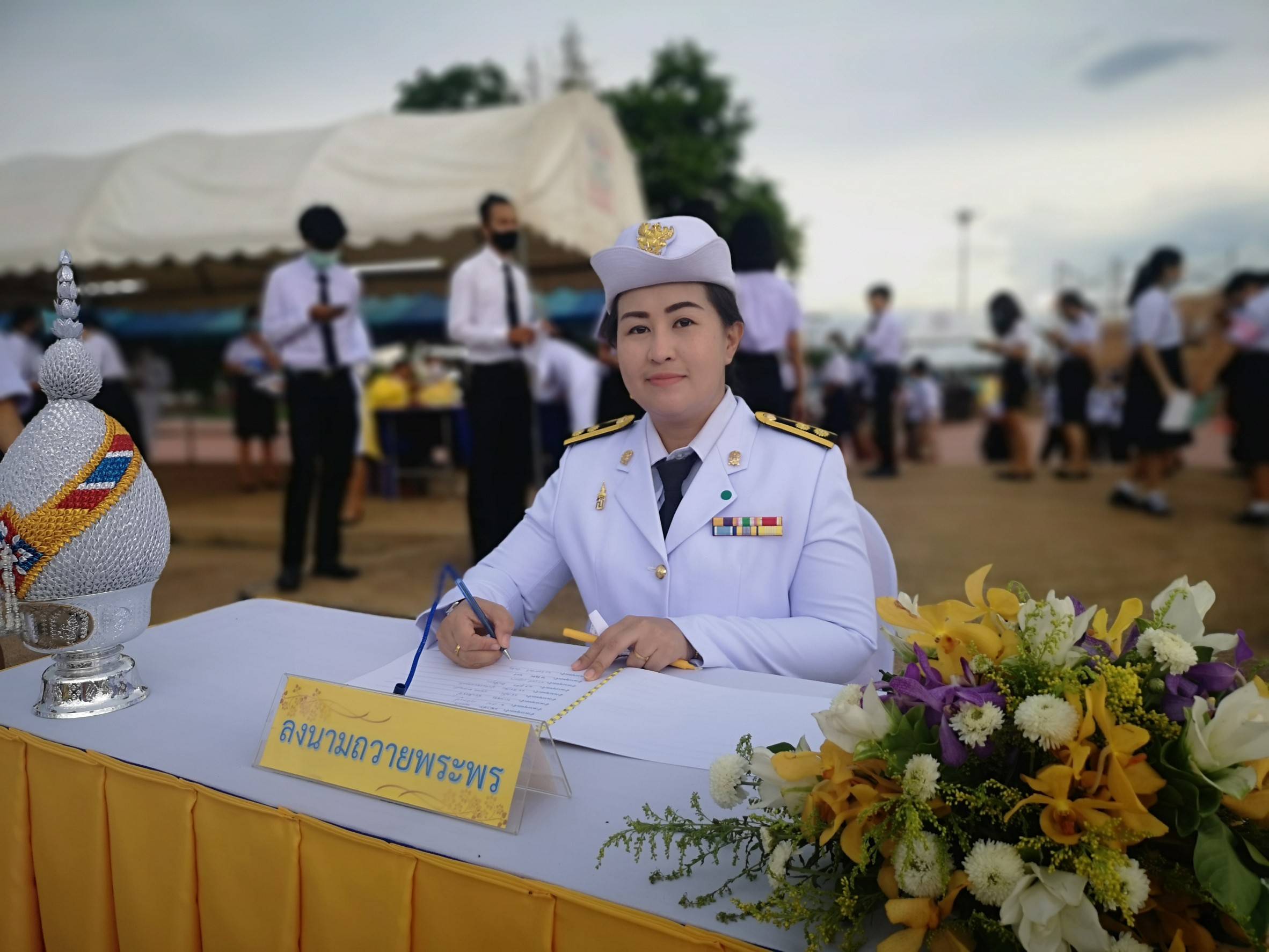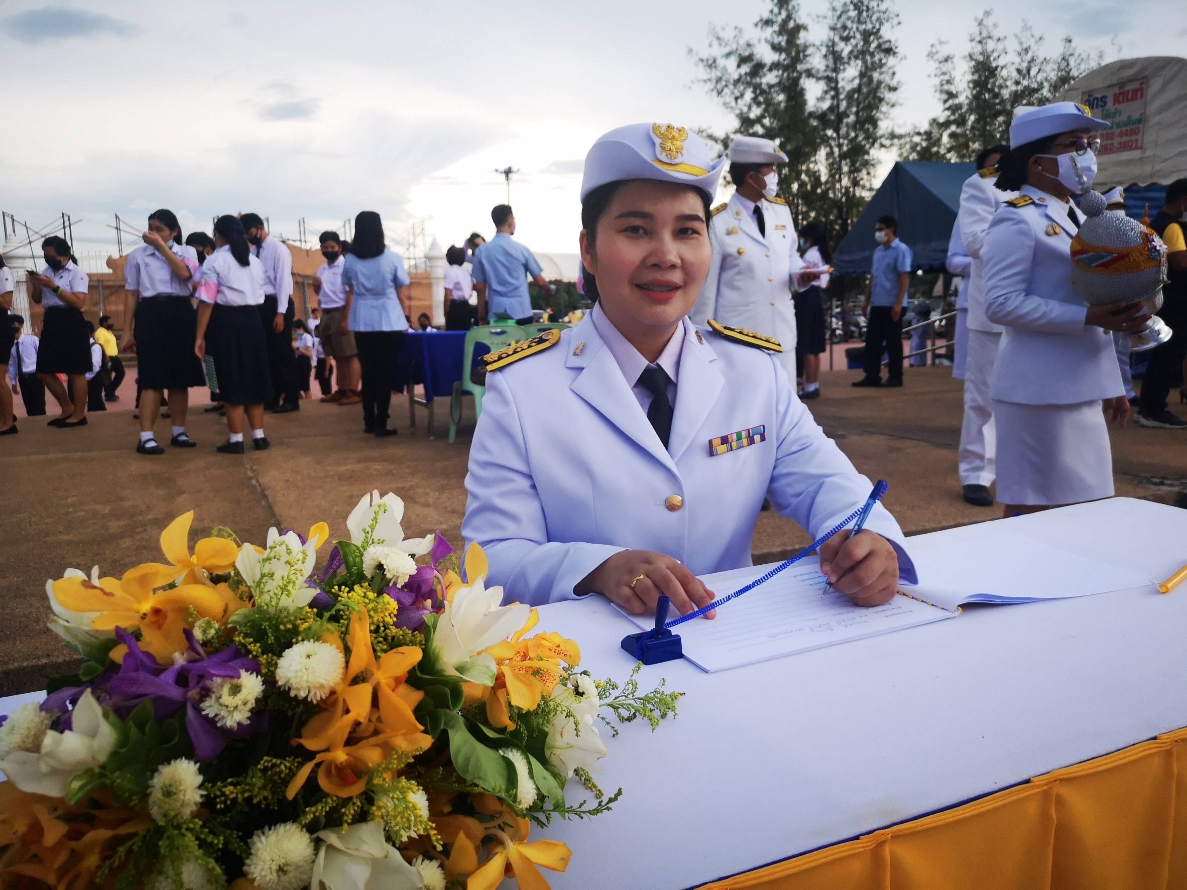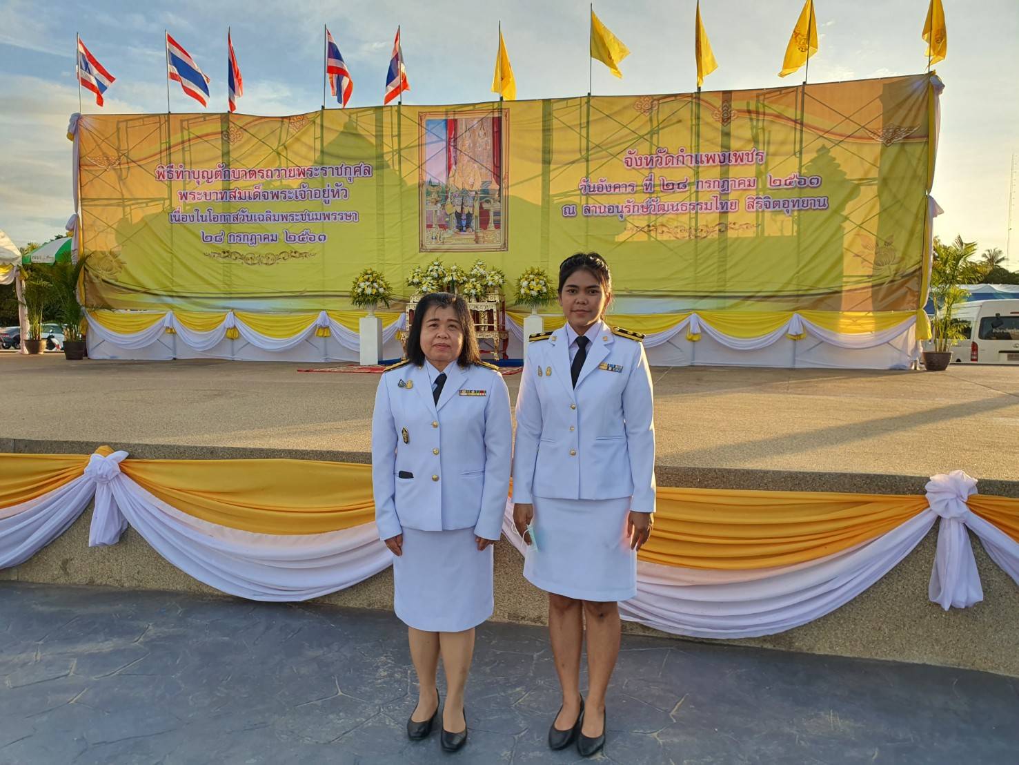 เวลา 17.30 น. นางคนึงนิตย์ วันนิตย์ ผู้อำนวยการสำนักงาน กศน.จังหวัดกำแพงเพชร พร้อมด้วย นางสาวสุดารัตน์ เบ้าทอง นักวิชาการศึกษาปฏิบัติการ นางสาวจินดารัตน์ ทับทิม นักวิชาการศึกษา นางสาวเจนจิรา จินดาวนิชย์ นักวิเคราะห์นโยบายและแผน ว่าที่ ร.ต.เกียรติชัย เกศาพร นักวิชาการศึกษา และนายประพัชร์ ถูกมี นักเทคโนโลยีสารสนเทศ ร่วมพิธีถวายเครื่องราชสักการะ วางพานพุ่ม และพิธีจุดเทียนชัย ถวายพระพรชัยมงคล ณ ลานอนุรักษ์ธรรมไทย(สิริจิตอุทยาน ริมปิง) ต.ในเมือง อ.เมือง จ.กำแพงเพชร โดยมีนายเชาวลิตร แสงอุทัย ผู้ว่าราชการจังหวัดกำแพงเพชร เป็นประธานในพิธี
