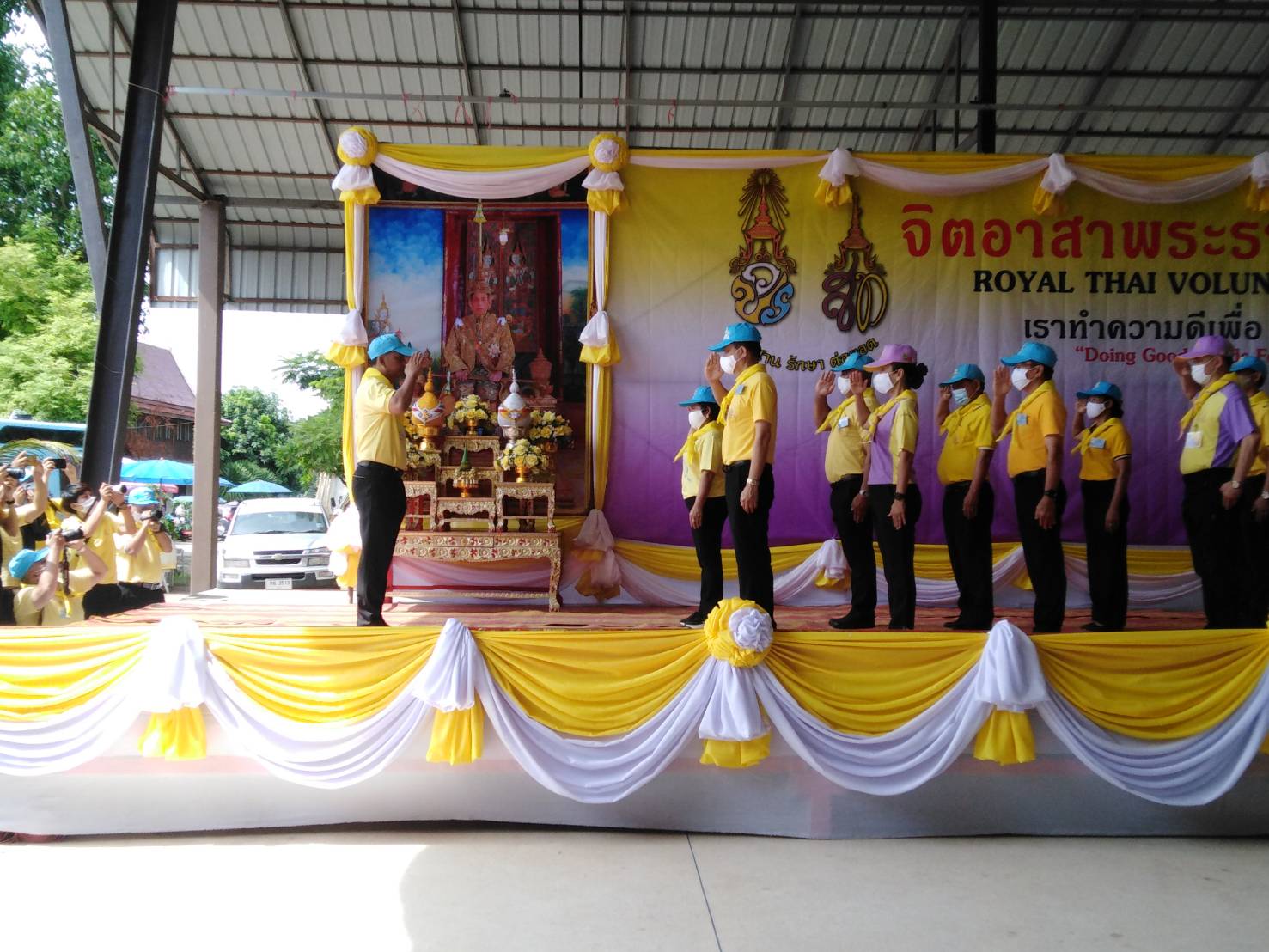 เวลา 11.00 น. นางคนึงนิตย์ วันนิตย์ ผู้อำนวยการสำนักงาน กศน.จังหวัดกำแพงเพชร มอบหมายให้ นางสาวชโรทัย ปัญติ ศึกษานิเทศก์ชำนาญการพิเศษ นางแสงอรุณ สุนทร นักจัดการงานทั่วไป และ นางสาวสุดารัตน์ พันธุ์ชัย นักวิชาการเงินและบัญชี ร่วมกิจกรรมจิตอาสาวิถีใหม่ใต้ร่มพระบารมี เราสร้างไปด้วยกัน ณ วัดพระบรมธาตุ พระอารามหลวง ตำบลนครชุม อำเภอเมืองกำแพงเพชร โดยมี นายเชาวลิตร แสงอุทัย ผู้ว่าราชการจังหวัดกำแพงเพชร เป็นประธานในพิธี