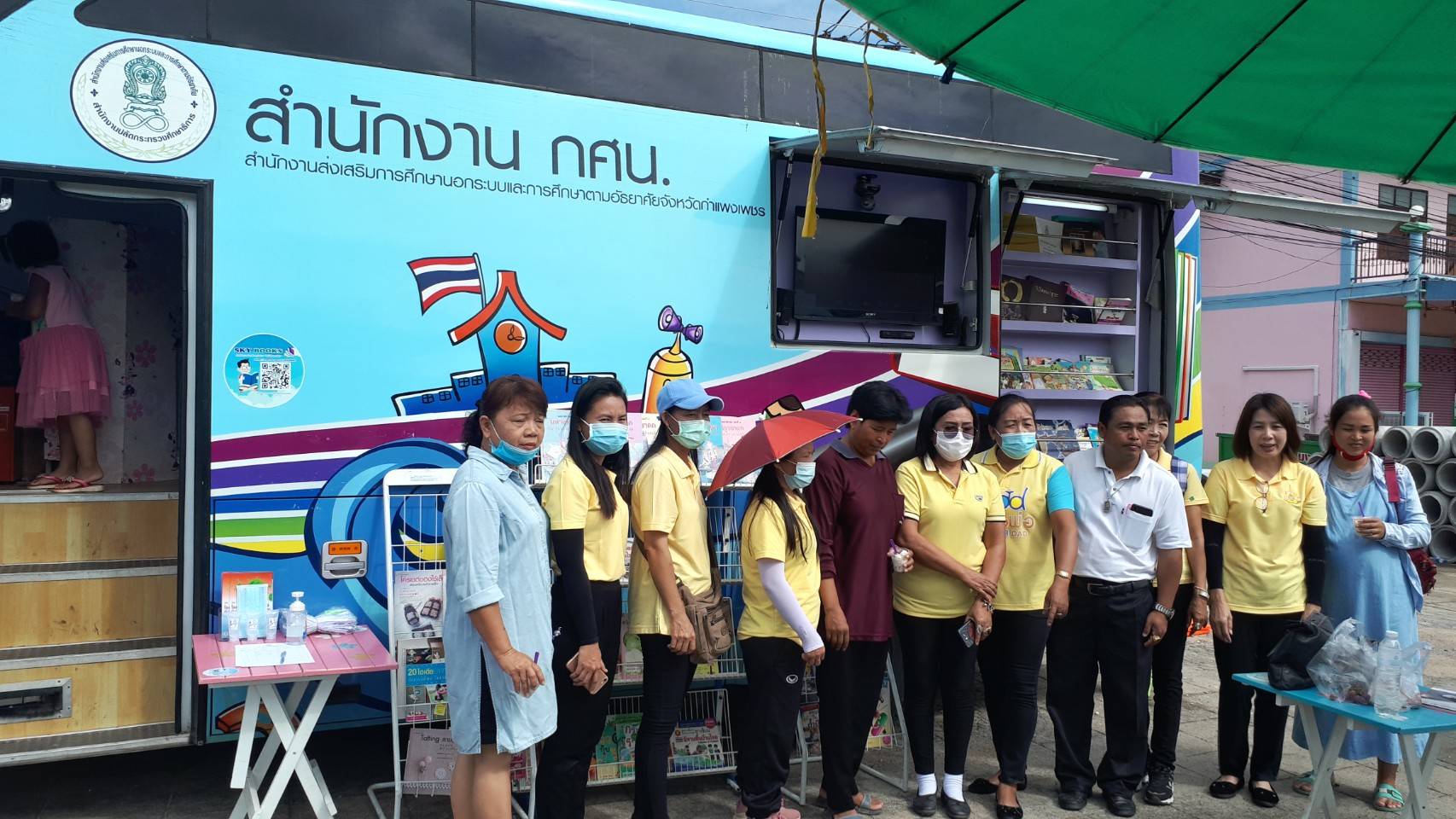 วันพุธที่ 29 กรกฎาคม 2563 นางคนึงนิตย์ วันนิตย์ ผู้อำนวยการ สำนักงาน กศน.จังหวัดกำแพงเพชร มอบหมายให้ นายศุภชาติ ศรีเกตุ พนักงานงานขับรถโมบาย เข้าร่วมกิจกรรม ส่งเสริมการอ่าน ณ ลานหน้าตลาดนัดวันพุธ ตำบลคลองลานพัฒนา อำเภอคลองลาน จังหวัดกำแพงเพชร โดยได้จัดกิจกรรมนี้มาเพื่อให้ความรู้เกี่ยวกับโรคโควิด 19 และวิธีป้องกันโรคโควิด 19 โดยในกิจกรรม มีการแจกเจลล้างมือและหน้ากากอนามัยให้กับประชาชน กิจกรรมส่งเสริมการอ่าน กิจกรรมแจกสูตรทำไอสครีมให้กับประชาชน ซึ่งได้รับความสนใจร่วมกิจกรรมจากนักเรียนเป็นจำนวนมาก