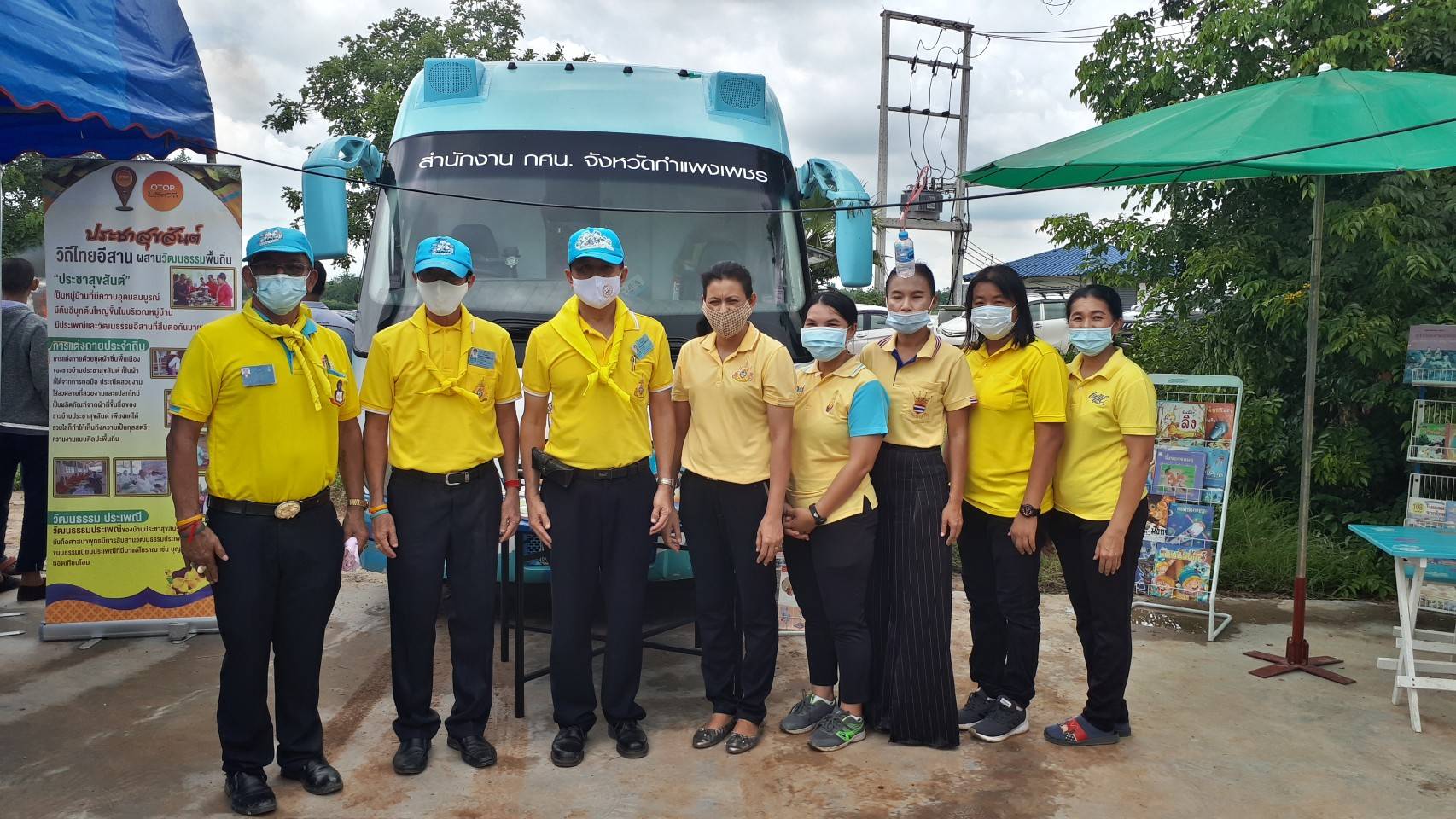 วันพฤหัสบดีที่ 6 สิงหาคม 2563 นางคนึงนิตย์ วันนิตย์ ผู้อำนวยการสำนักงาน กศน.จังหวัดกำแพงเพชร มอบหมายให้ นายศุภชาติ ศรีเกตุ พนักงานงานขับรถโมบาย และ คณะครูกศน. อำเภอลานกระบือ เข้าร่วมโครงการ หน่วยบำบัดทุกข์ บำรุงสุข สร้างรอยยิ้มให้ประชาชน จังหวัดกำแพงเพชร ณ สวนสาธารณเฉลิมพระเกียรติ บ้านบึงสว่างอารมณ์ ตำบลบึงทับแรด อำเภอลานกระบือ จังหวัดกำแพงเพชร นำโดยนายเชาวลิตร แสงอุทัย ผู้ว่าราชการจังหวัดกำแพงเพชร เป็นประธานในพิธีฯ ซึ่งในส่วนของ สำนักงาน กศน.จังหวัดกำแพงเพชร มีการจัดกิจกรรม โดยในงานมีกิจกรรมมีดังนี้