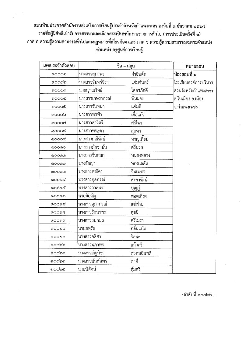 1. ประกาศรายชื่อผู้มีสิทธิสอบข้อเขียน ครูศูนย์การเรียนรู้ชุมชน ฯ