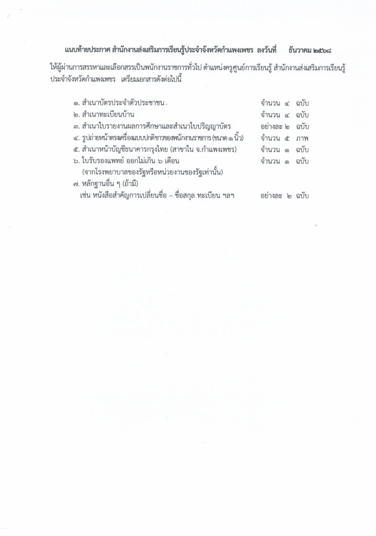 ประกาศ สำนักงานส่งเสริมการเรียนรู้ประจำจังหวัดกำแพงเพชร เรื่องผู้ผ่านการสรรหาและเลือกสรรเป็นพนักงานราชการทั่วไปตำแหน่งครูศูนย์การเรียนรู้